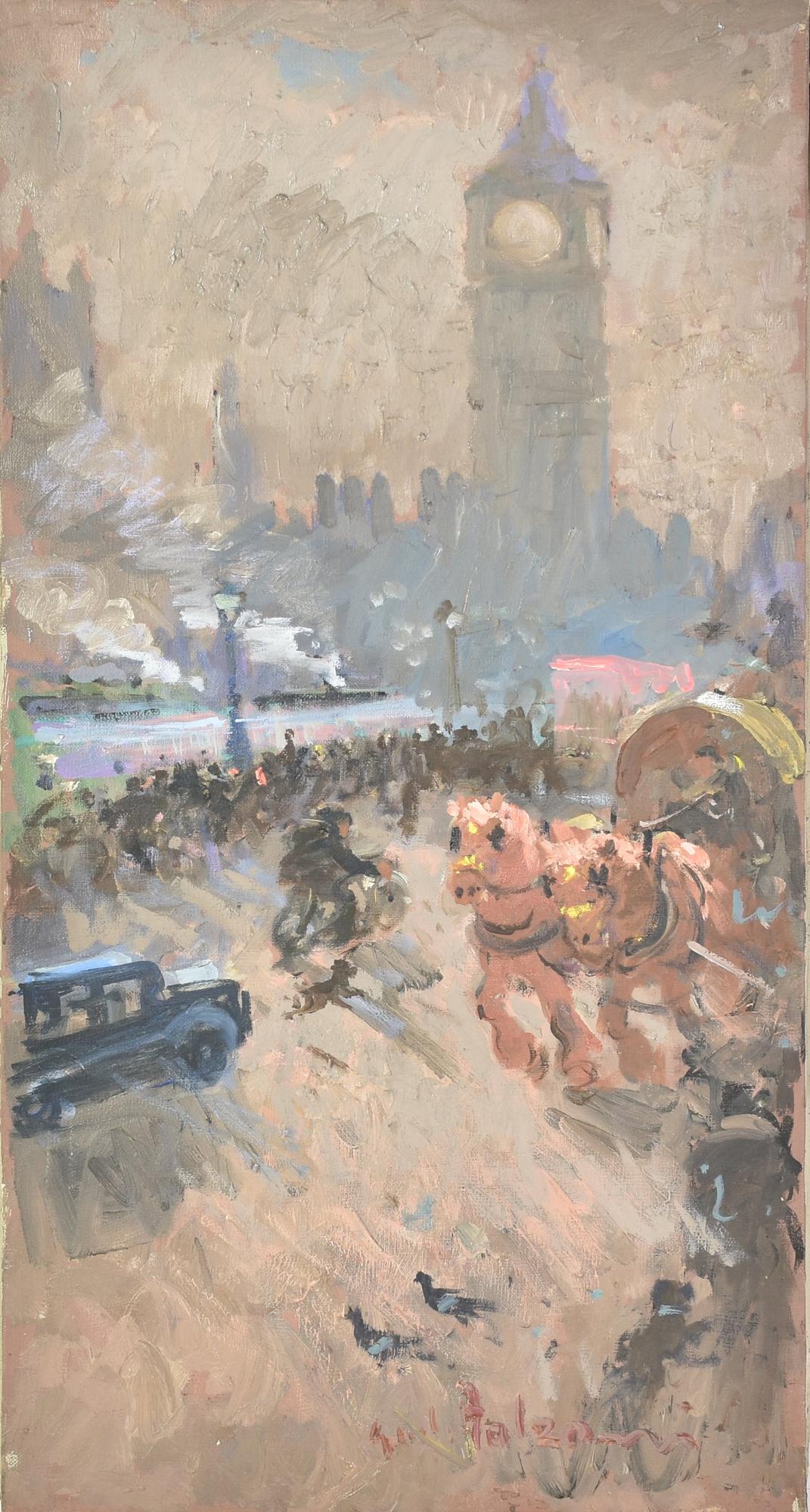 Giulio Falzoni LONDRA olio su tela, cm 61x31 firma sul retro: firma a titolo