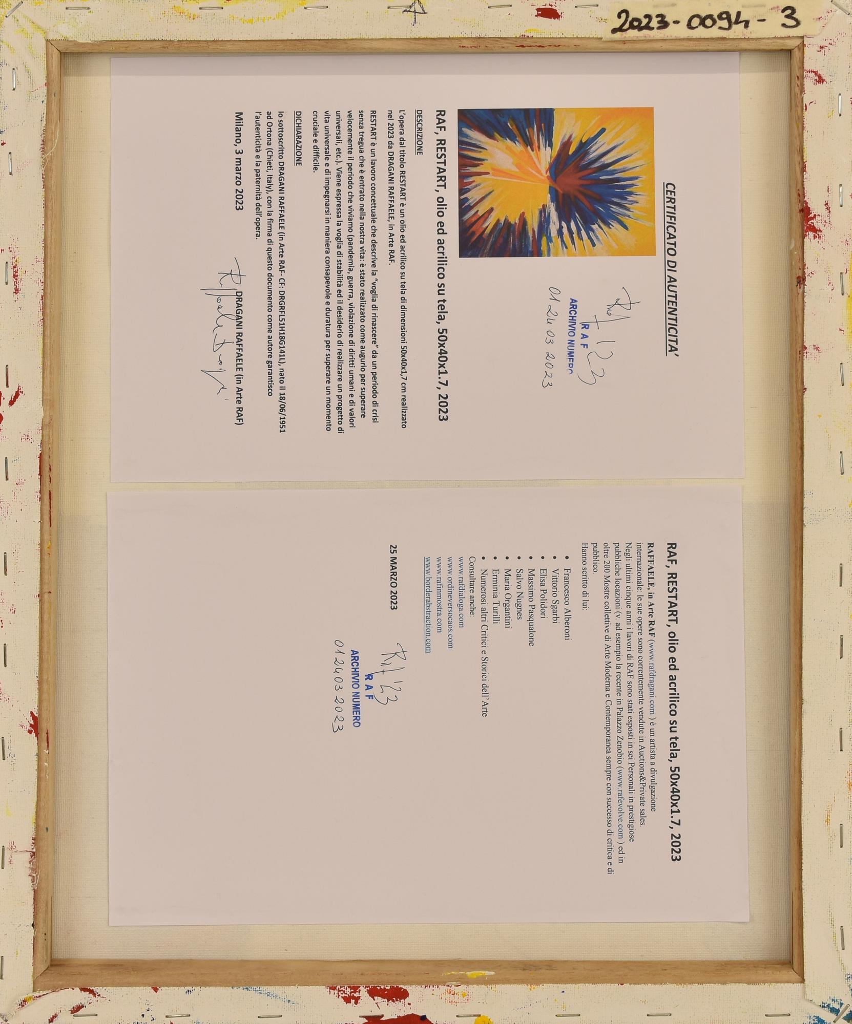 RAF RESTART,2023 olio ed acrilico su tela, cm 50x40 sul retro: etichetta...