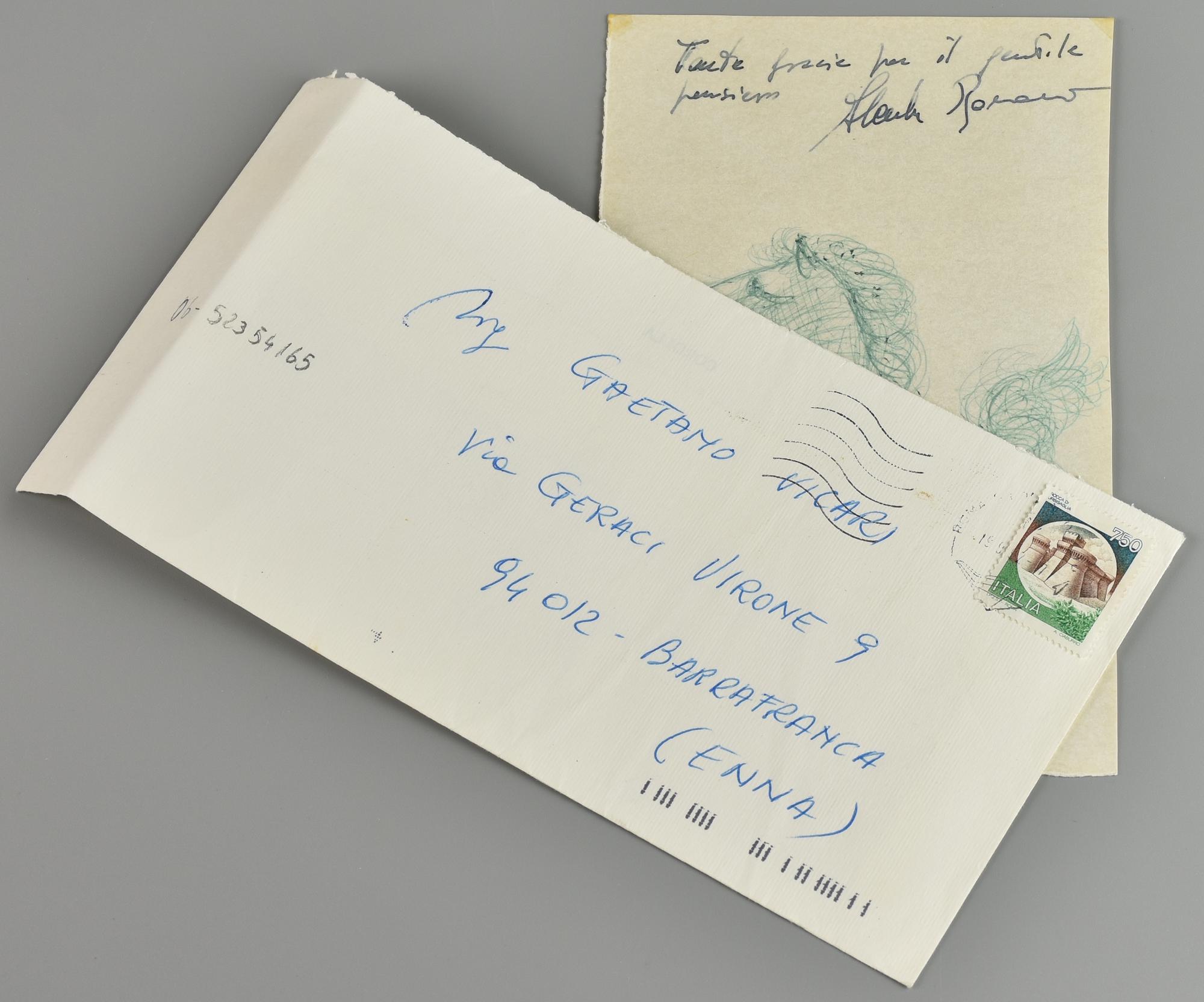 Alessandro Romano CAVALLO biro su carta, cm 17,5x11 firma e dedica ad...