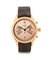 Cassa n. A185978 massiccia in oro giallo 18 kt con oblò sul fondello chiuso da viti, pulsanti tondi e vetri zaffiro (ottimo). Quadrante rosa con numeri romani smaltati, contatore a 30 minuti e scala tachimetrica periferica (come nuovo). Movimento cal. 13-21 con regolazione micrometrica, carica manuale (ottimo). Quadrante, cassa e movimento firmati. Completo di cinturino e fibbia in oro giallo originali.