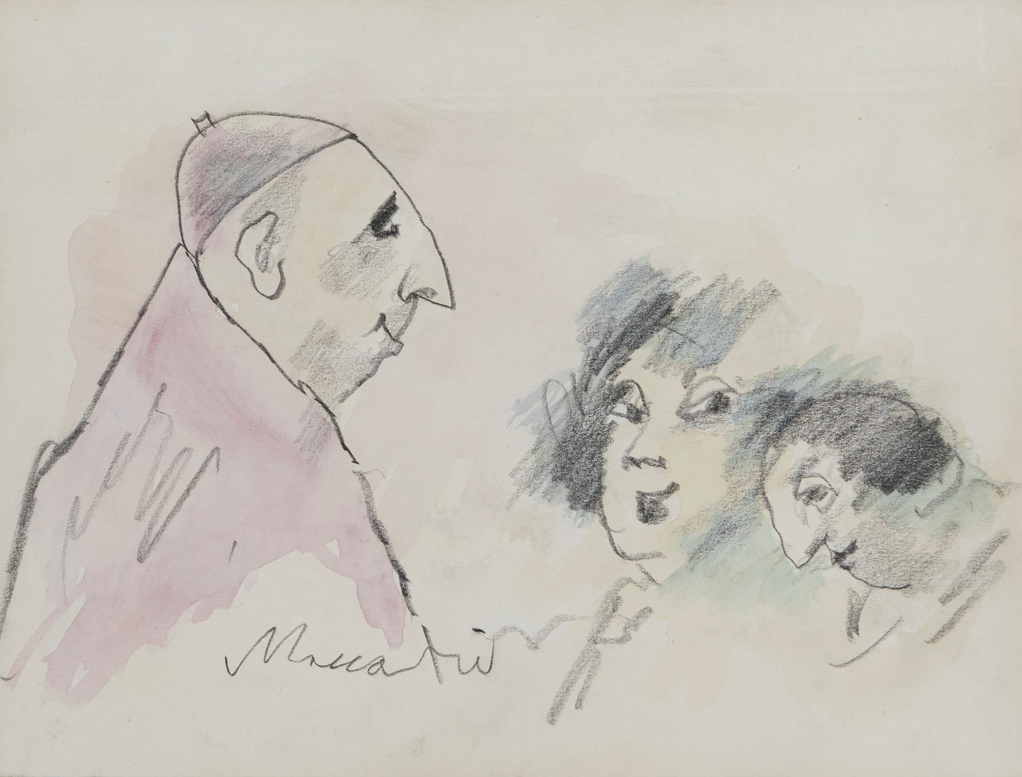 Lot 53 | Mino Maccari (Siena 1898-Roma 1989) - Renzo, Lucia e il Cardinale