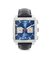 Cassa n. EAQ4634 carré in acciaio con oblò sul fondello chiuso da viti e pulsanti rettangolari (come nuovo). Quadrante bicolore blu e argentato con indici applicati, contatore a 30 minuti e data al 6 (come nuovo). Movimento cal. 12 a carica automatica (come nuovo). Quadrante, cassa e movimento firmati. Completo di cinturino, fibbia deployante in acciaio, astuccio e certificato originali del 09/2013.