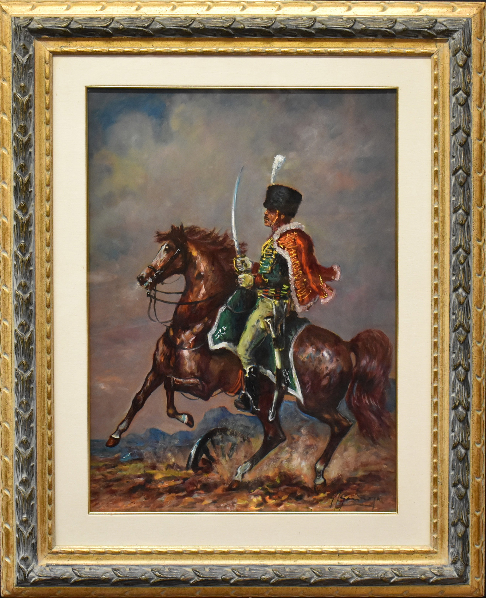 Giovan Francesco Gonzaga (Milano 1921-2007) 'cavaliere' olio su tela firmato in basso a destra.