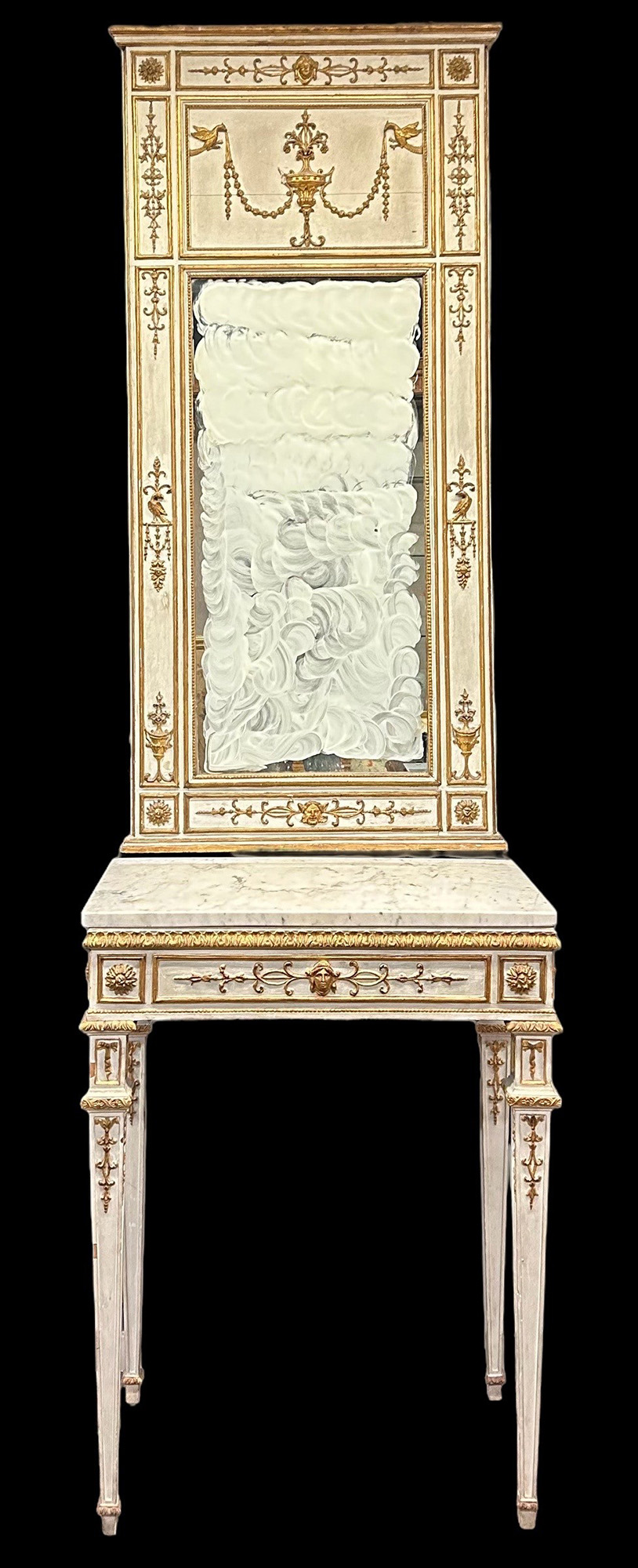 Consolle con specchiera in legno laccato e dorato stile Luigi XVI