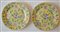 Cina coppia di piatti in porcellana fondo giallo con decoro floreale e farfalle