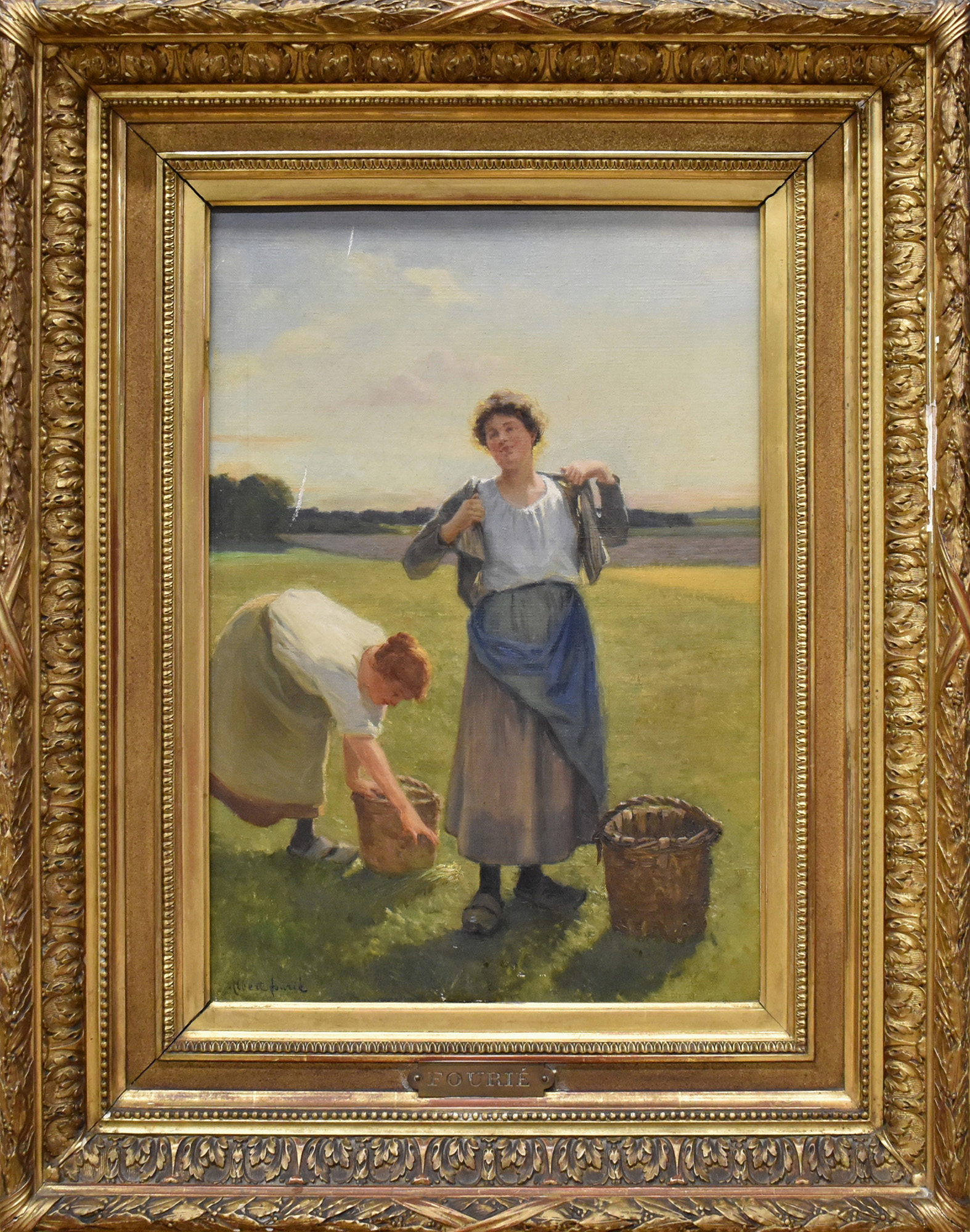 Olio su tela 'Due contadine' recante firma in basso a sinistra Albert Fourie