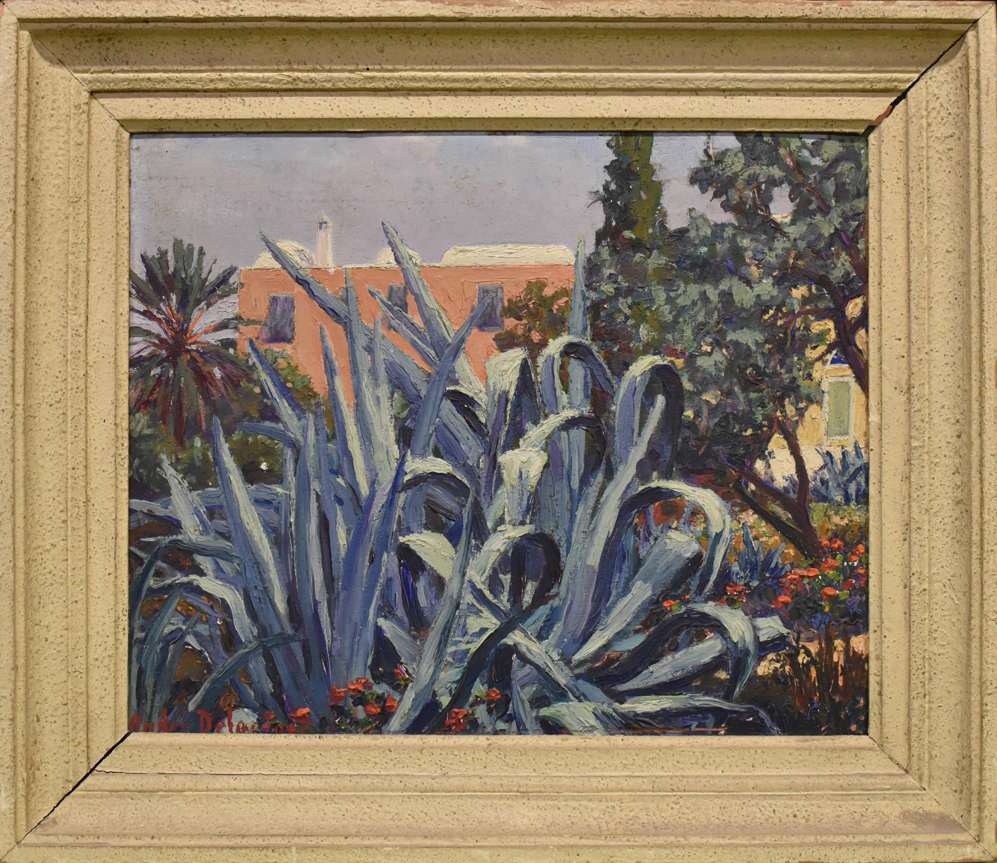 Andre Delacroix 'Casa attraverso piante di agave' olio su tavoletta firmata in basso a sinistra
