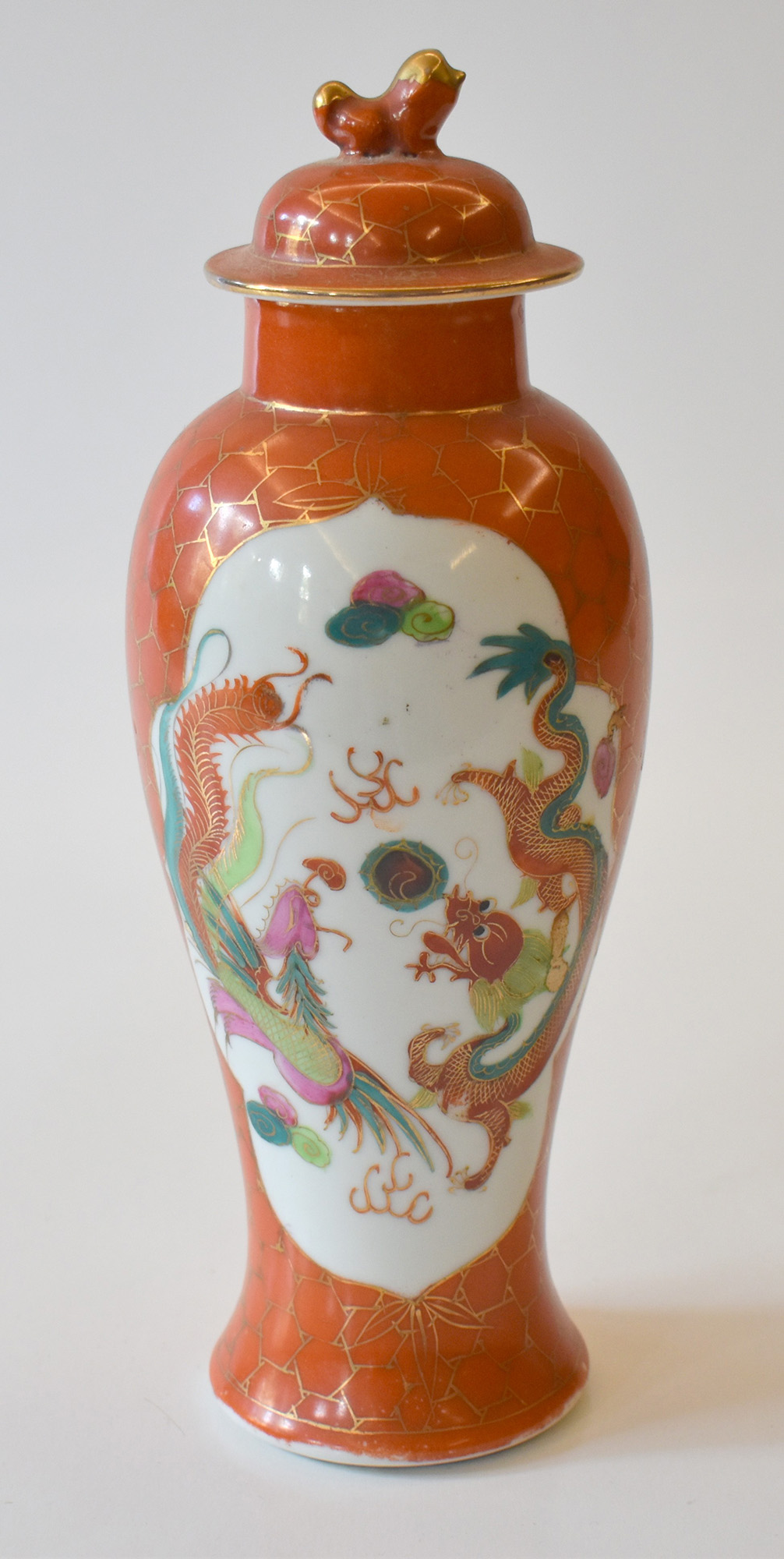Cina vaso in porcellana fondo arancione con riserve dipinte