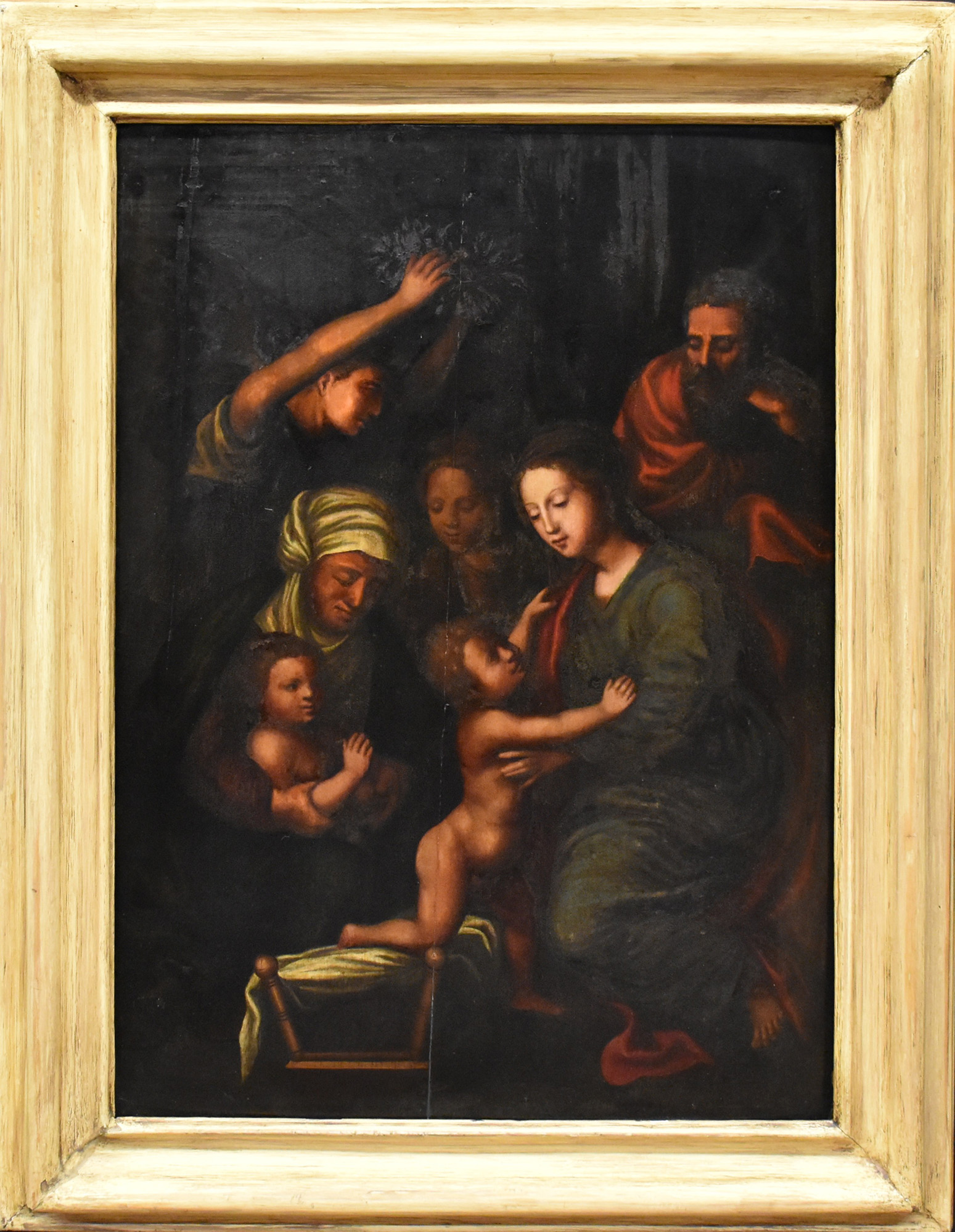 'Sacra famiglia e Sant'Anna' olio su tavola di rovere sec.XVII