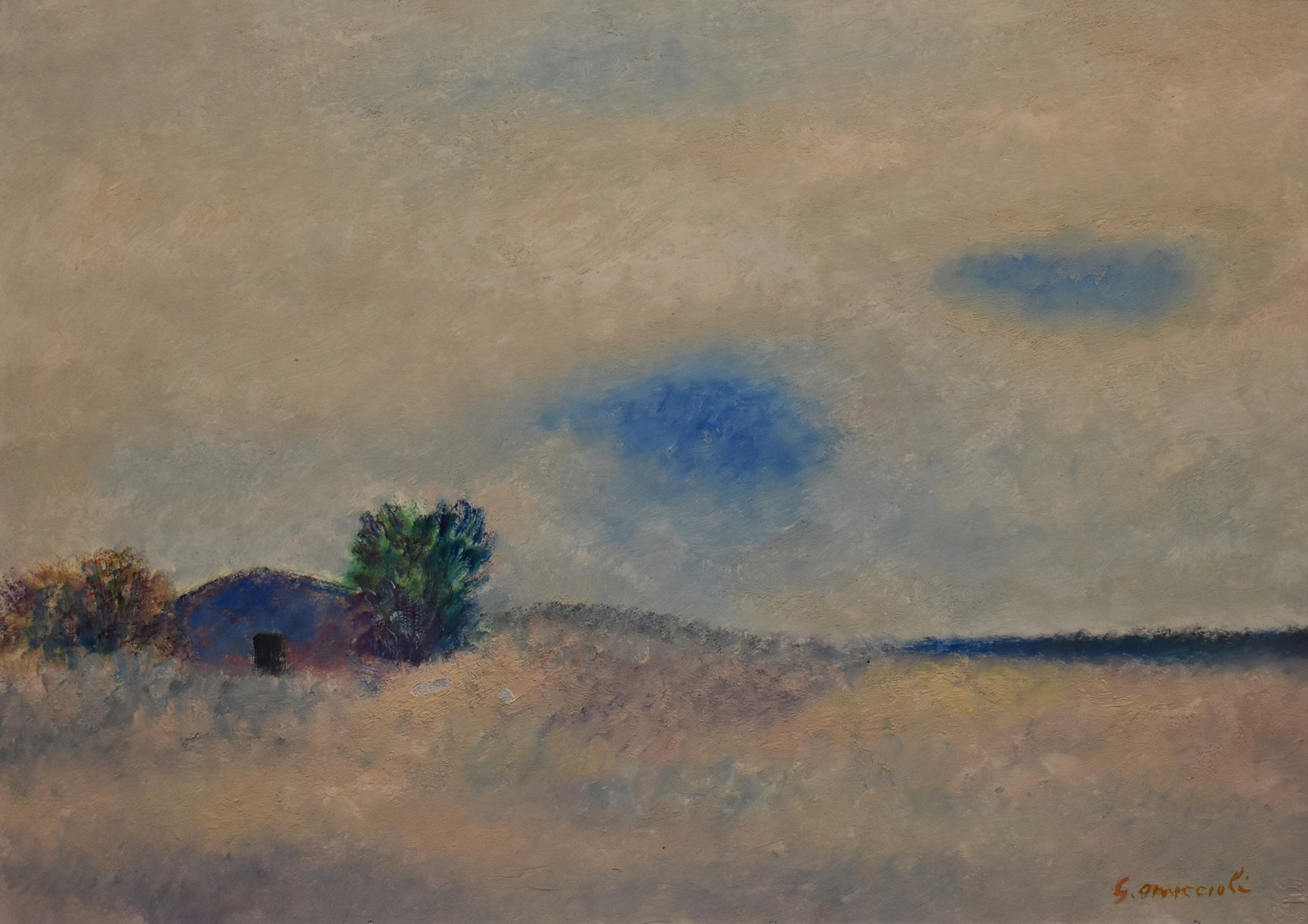Giovanni Omiccioli (1907-1975) 'Paesaggio' olio su cartone firmato in basso a destra