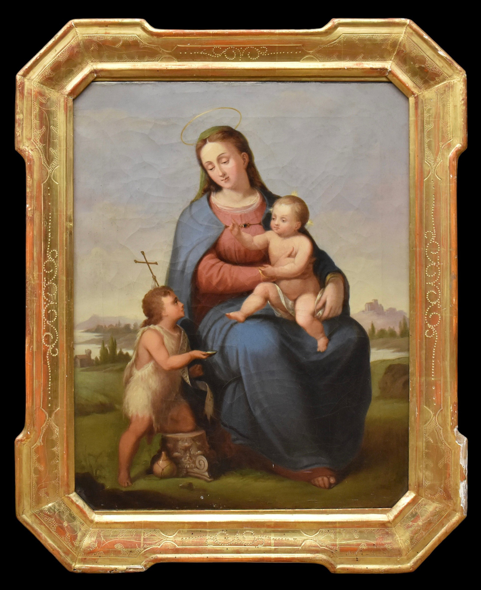 'Madonna con bambino e San Giovannino' olio su tela sec.XIX
