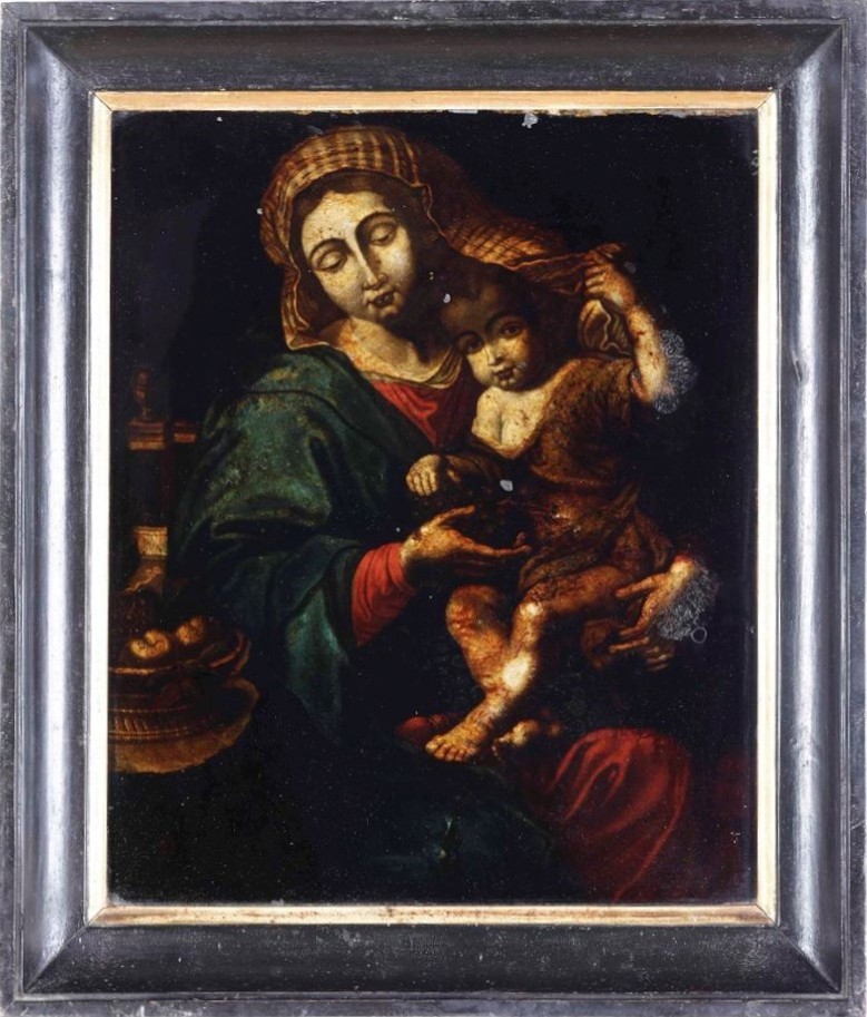 'Madonna con bambino' olio sotto vetro sec.XVIII