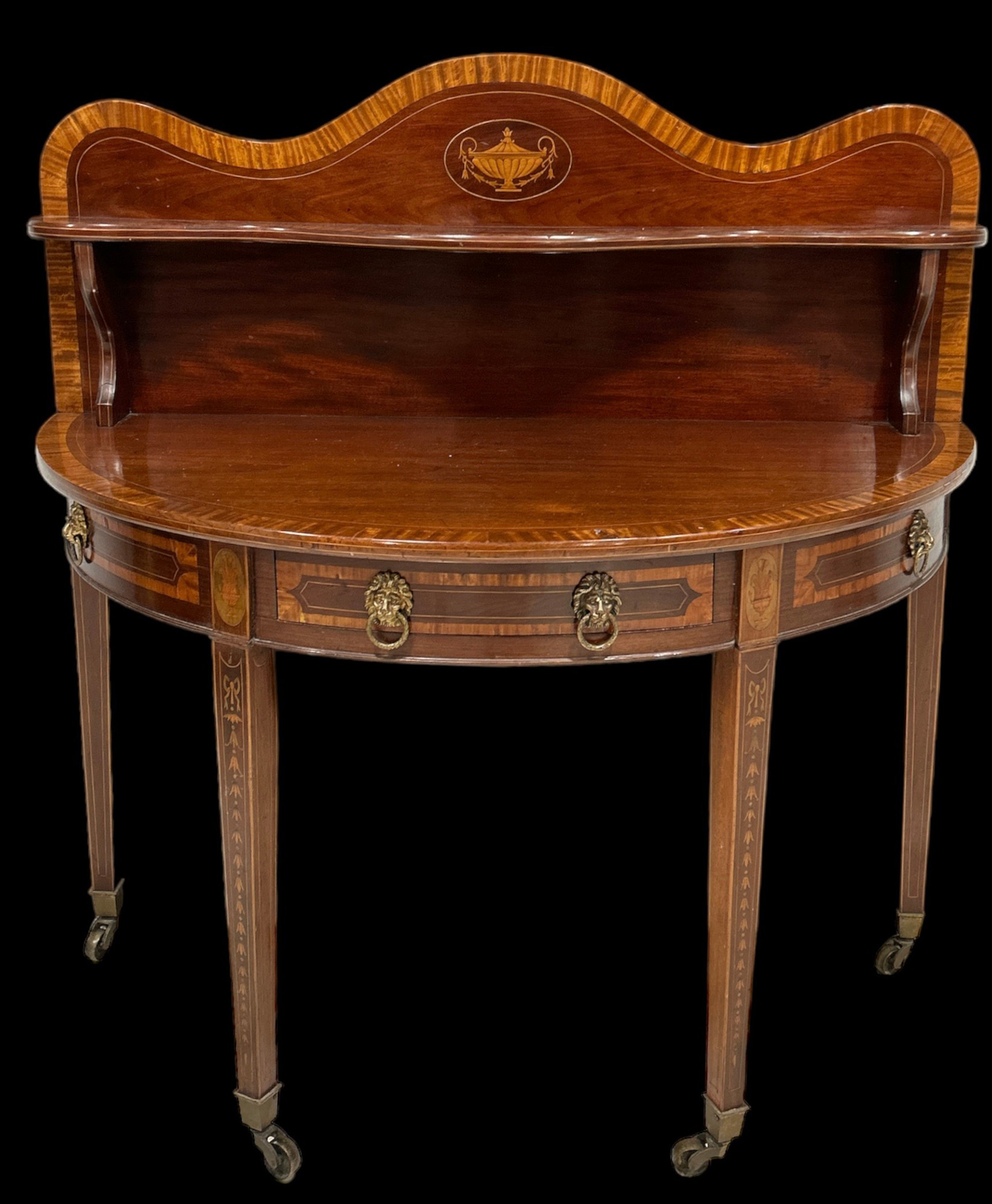 Consolle a tre cassetti con alzata intarsiata e filettata Inghilterra sec. XIX