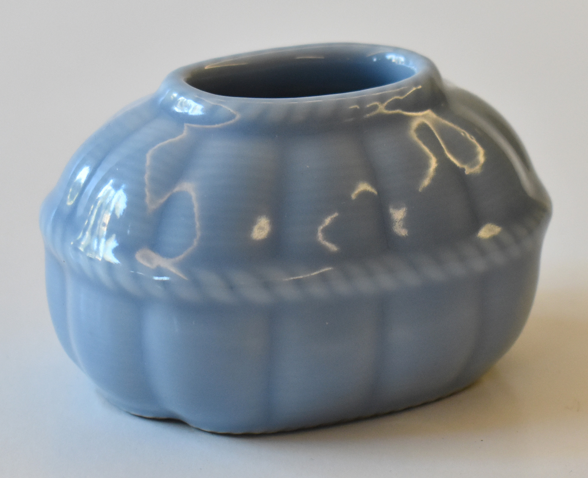 Cina piccolo vaso in porcellana azzurra decorata con granchio