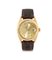Diam. mm 36. C. 18K yellow gold with screwed case back and crown, reeded bezel (very good). D. champagne with applied indexes, centre seconds, aperture for day, Spanish, at 12, date at 3 (original, very good). M. self-winding (good). Dial, case and movement signed. Accompanied by Rolex strap and buckle.