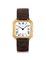 Dim. 27x27. C. square-shaped 18K yellow gold (good). D. white with painted Roman numerals (original, very good). M. manual winding (good). Dial, case and movement signed. Accompanied by Cartier 18K yellow gold deployant clasp.