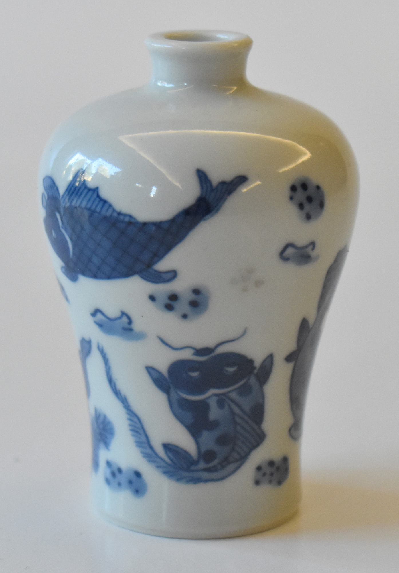 Cina vasetto in porcellana bianca e blu decorato con pesci