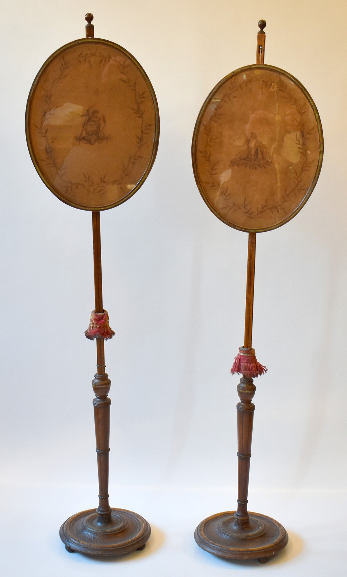 Coppia di paracalore in legno con ovali decorati Inghilterra inizio sec XIX