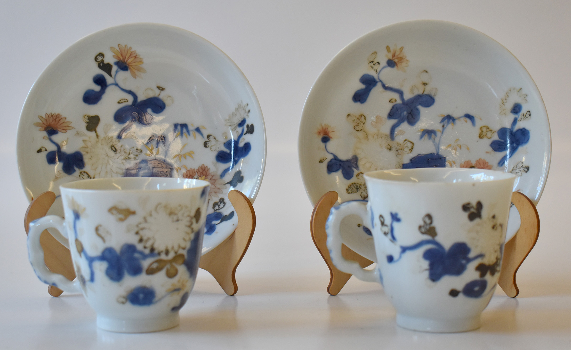 Cina coppia di tazzine con piattini in porcellana dipinta Nanking Cargo