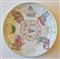 Cina piatto in porcellana bianca decorata con personaggi scritte motivi floreali e animali