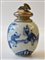 Cina vaso in porcellana bianca e blu con incollato montatura in metallo