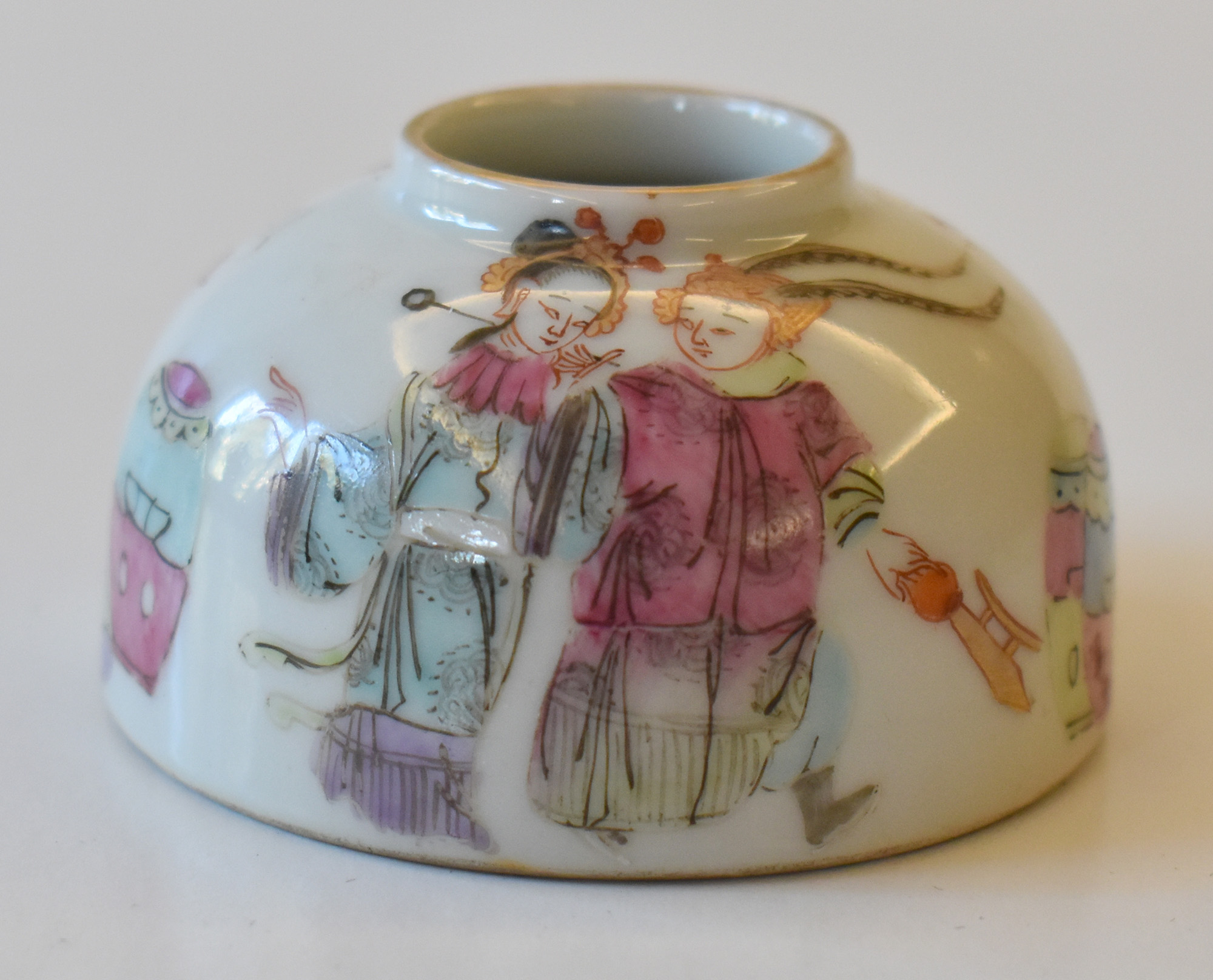 Cina lavapennelli in porcellana policroma decorata con personaggi