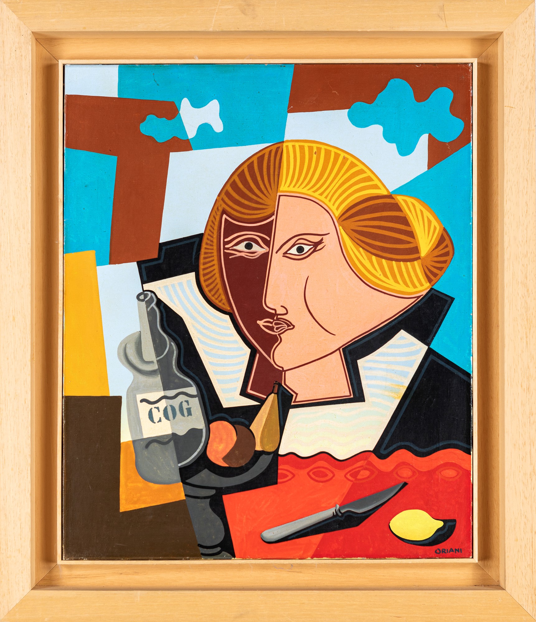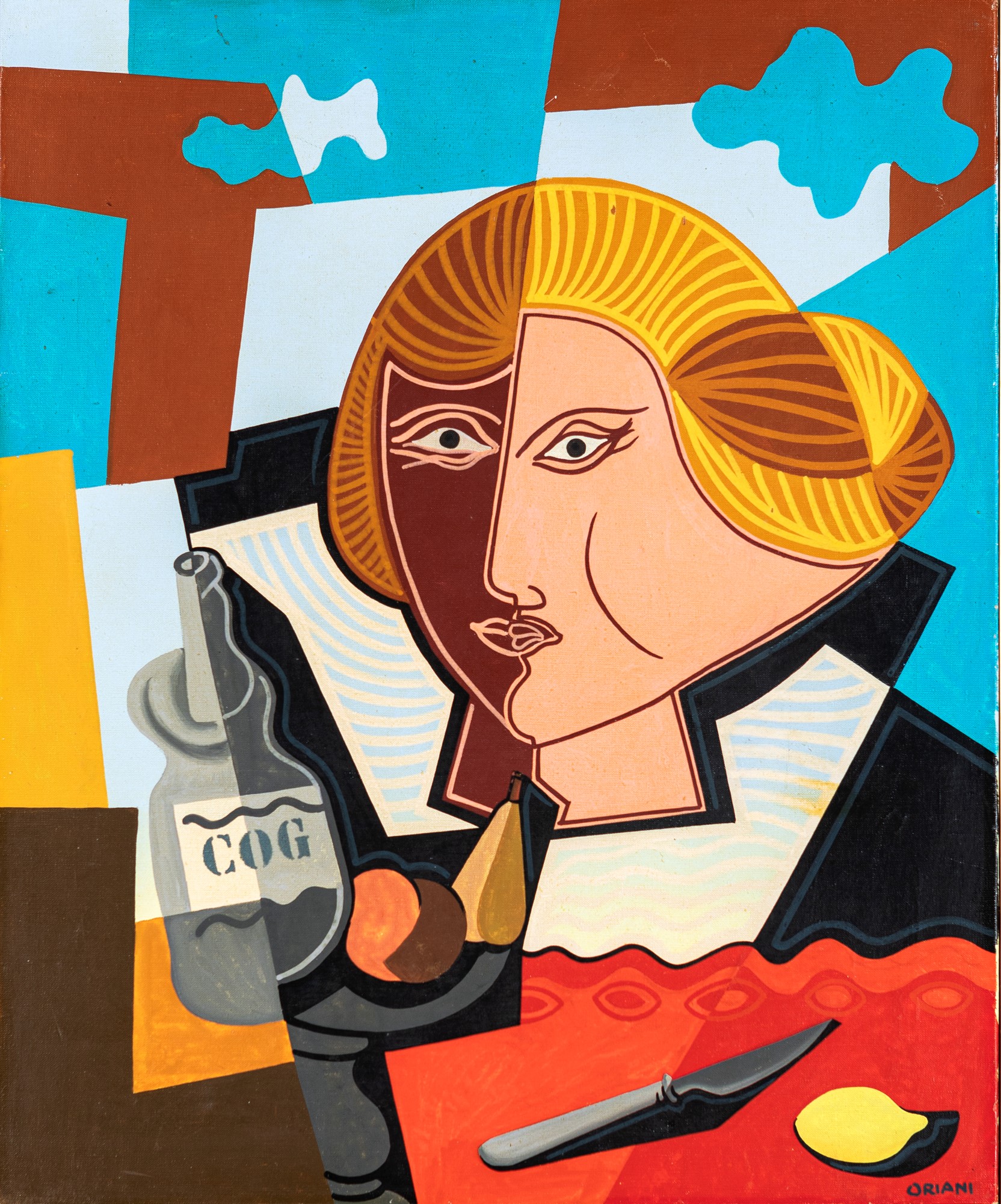 Natura Morta con testa di donna 1960 Olio magro su tela cm 60x50 - in cornice cm 75x65 Firma in basso a destra "Oriani". Al verso reca dedica a Lillo Adamo Certificato di autenticità rilasciato dalla Fondatione Oriani