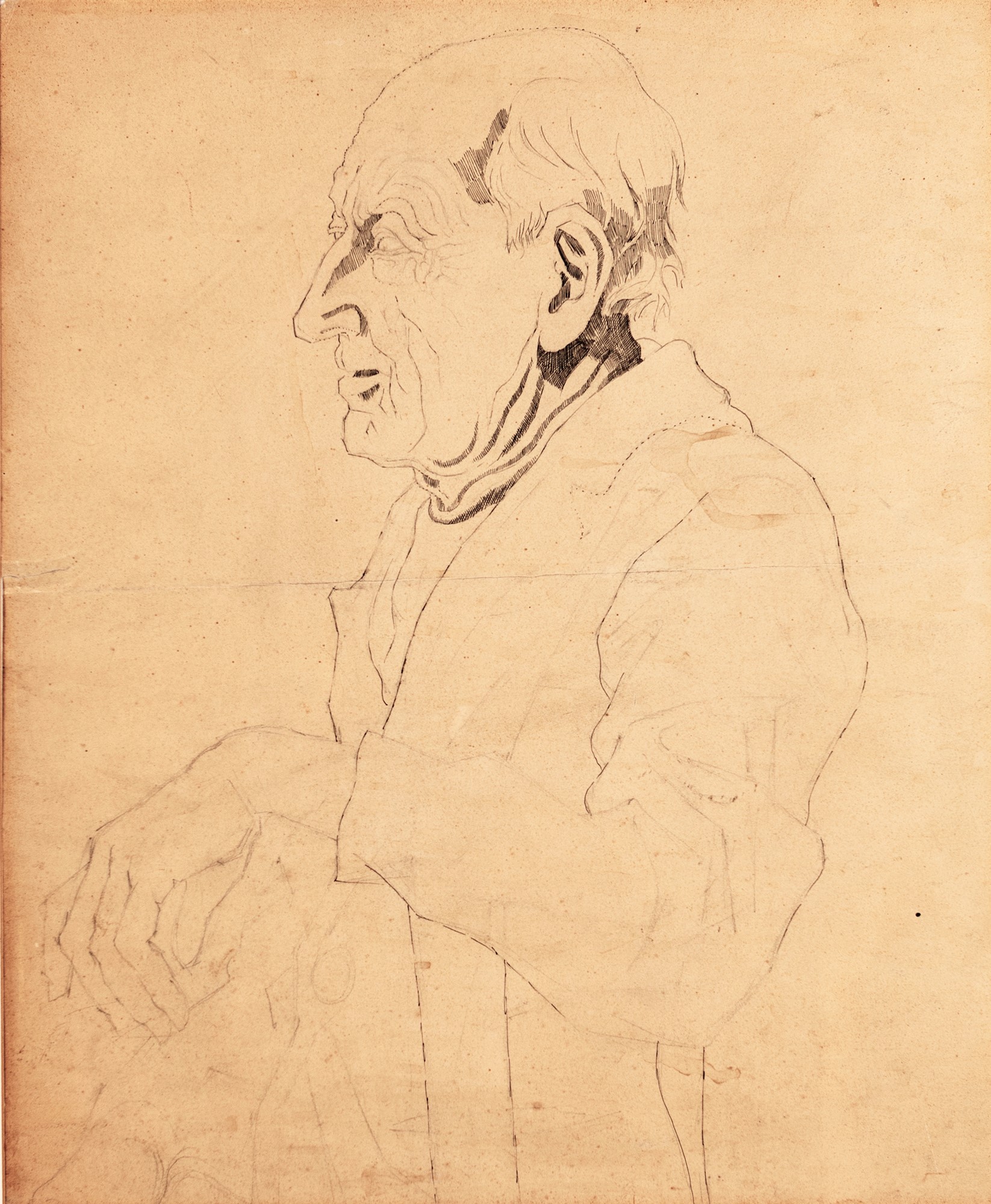 Al verso reca "Profilo di vecchio", 1942/43, matita e china su carta.
