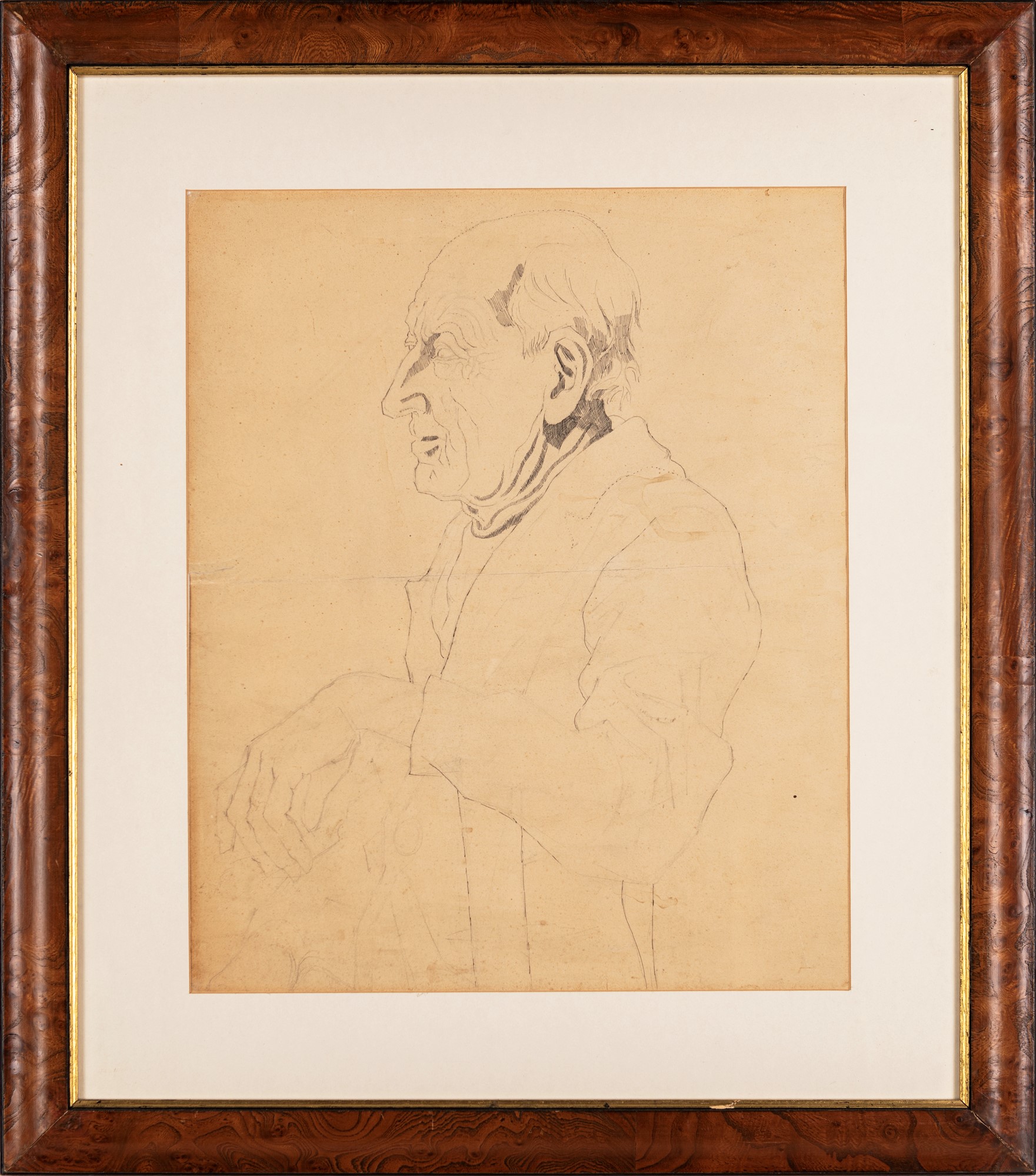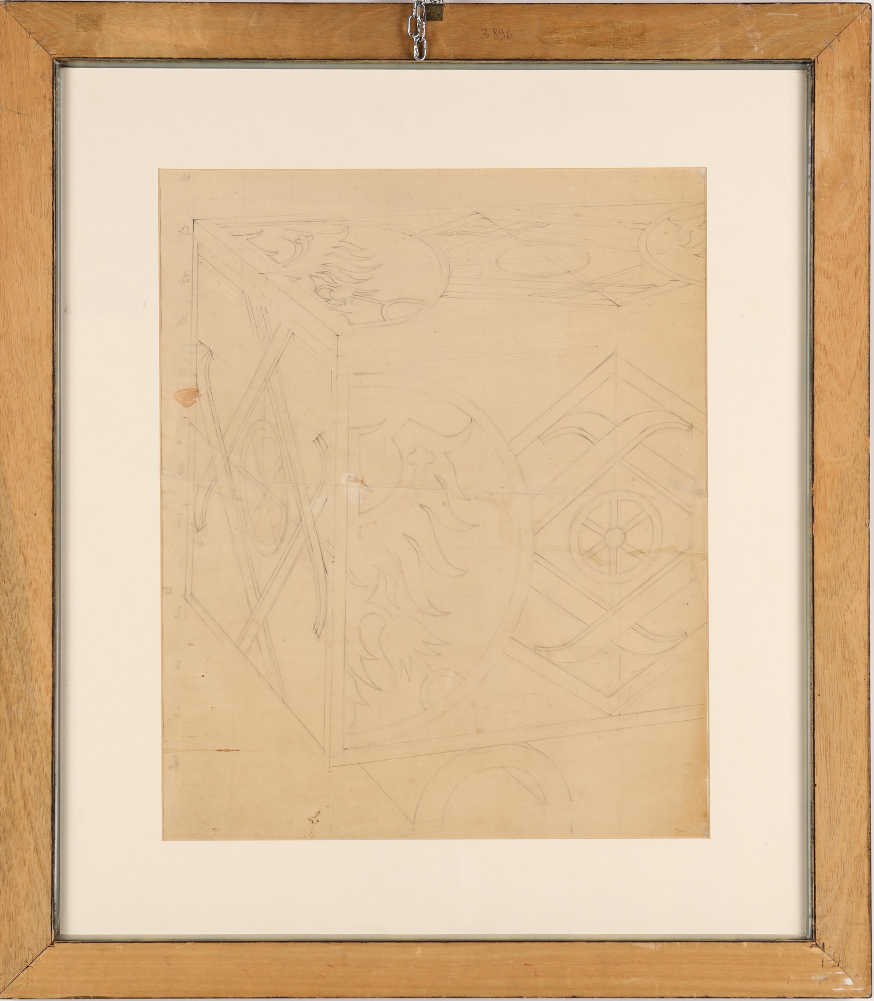 Progetto esecutivo per cassapanca in Buxus - al verso Profilo di Vecchio 1938/39 Matita su carta cm 54x45 - in cornice cm 80x71