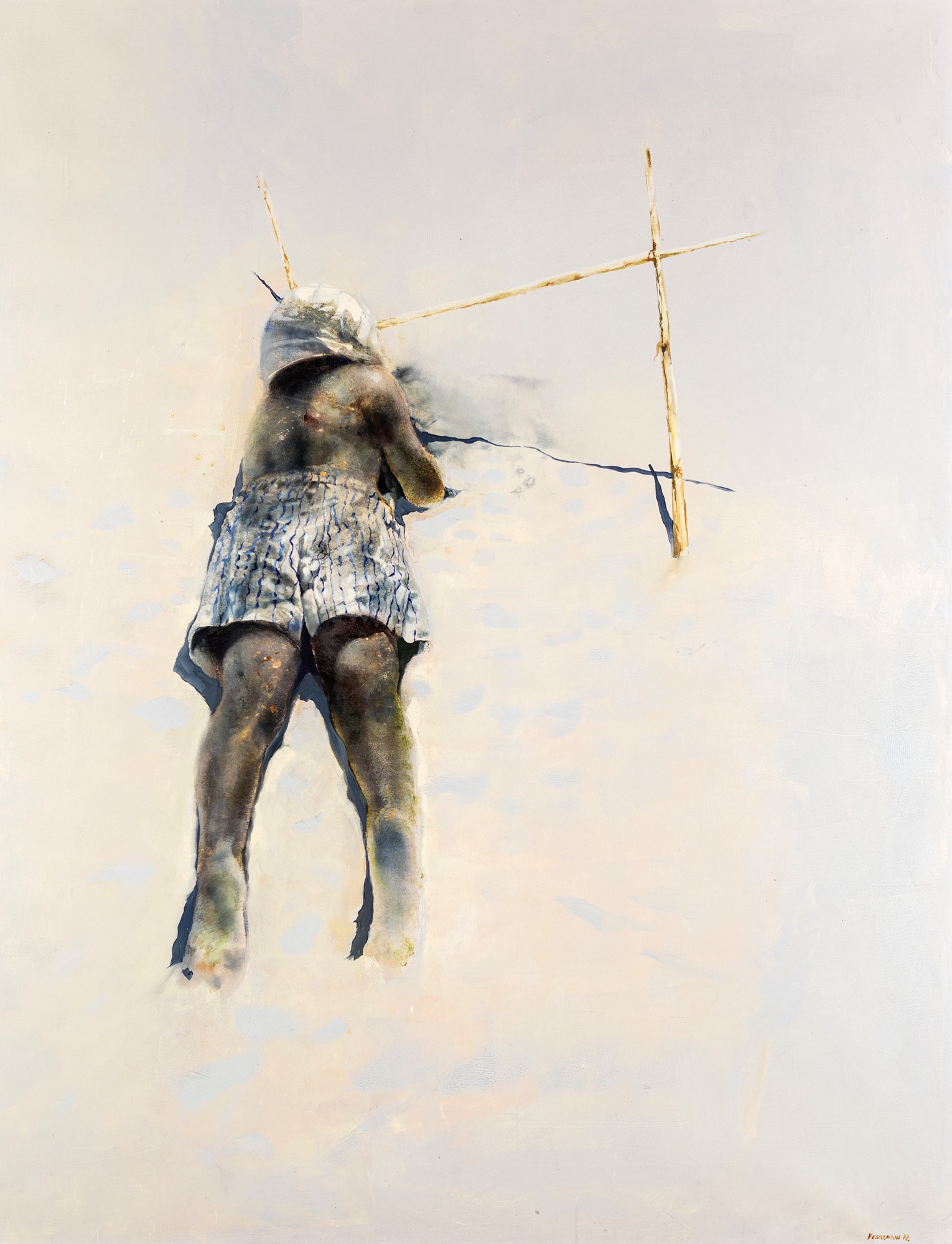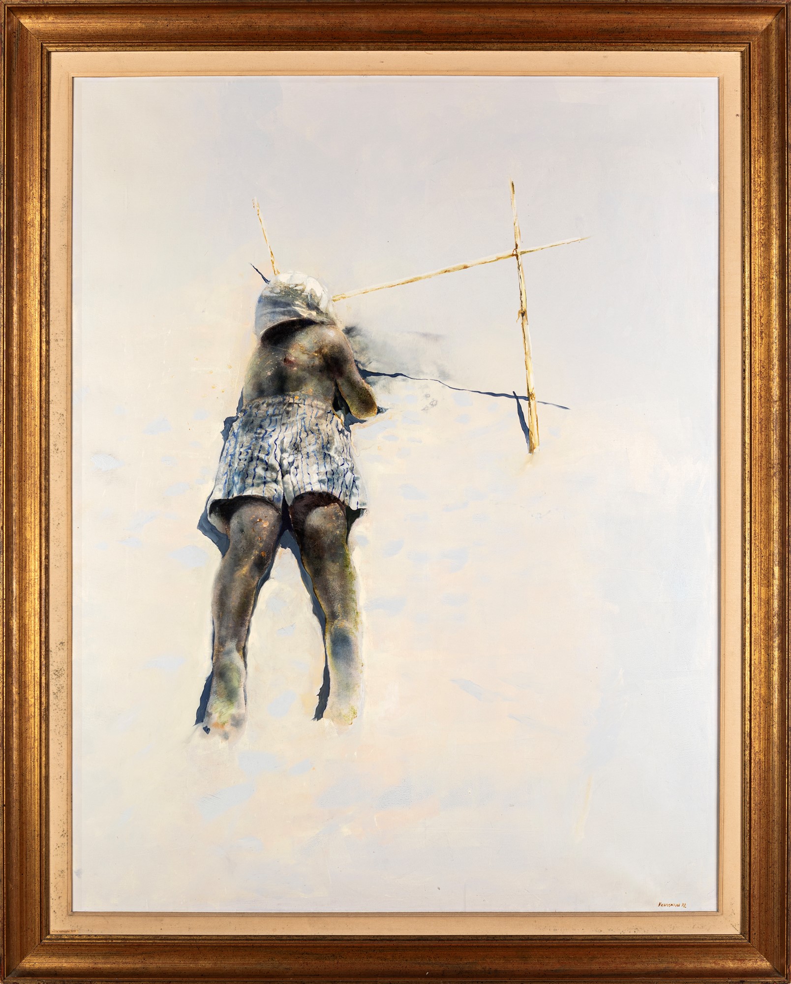 Sulla Spiaggia (Colonia marina) 1972 Olio su tela cm 146x114,5 - in cornice cm 168x136 Firma e data in basso a destra "Vespignani '72"