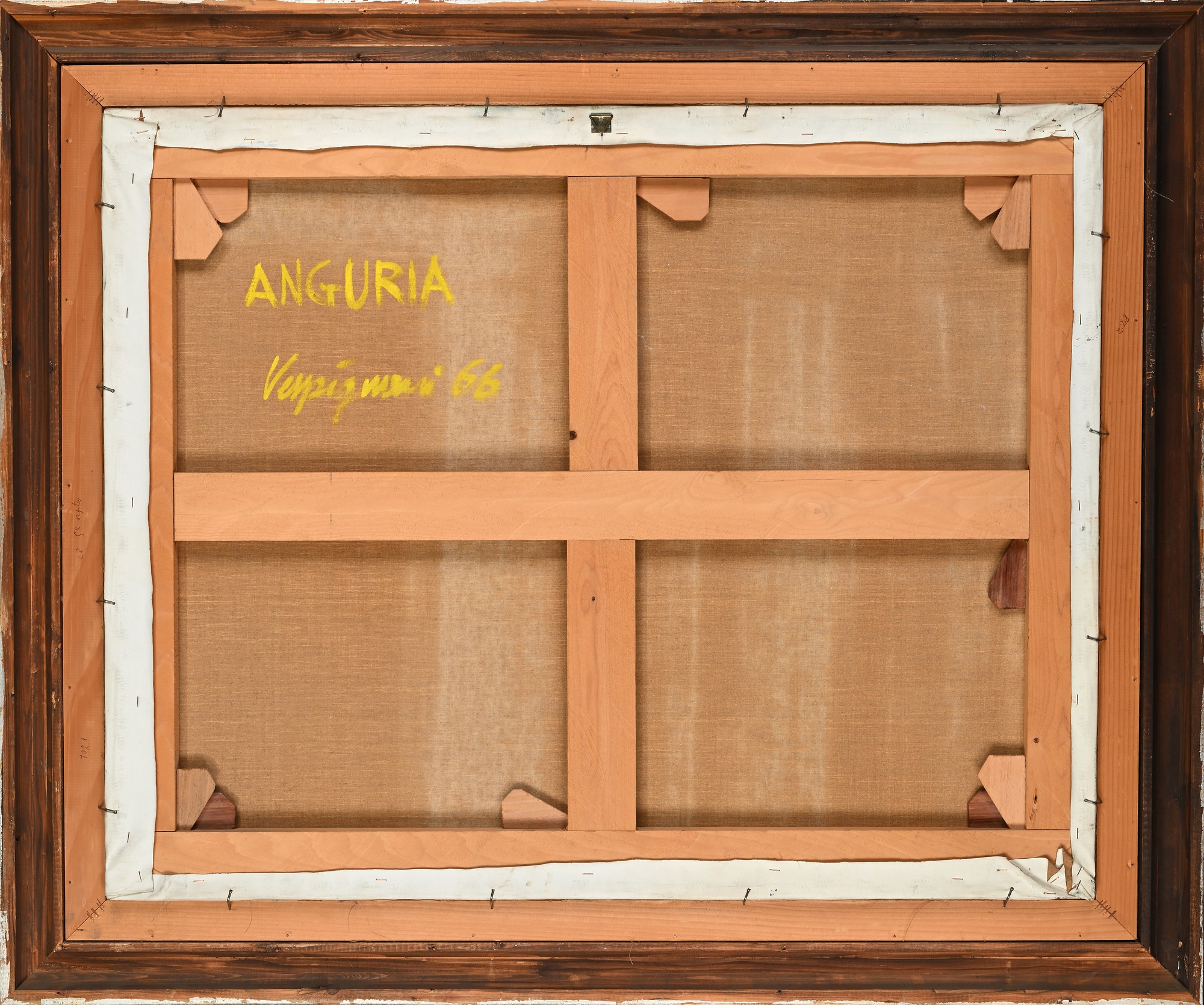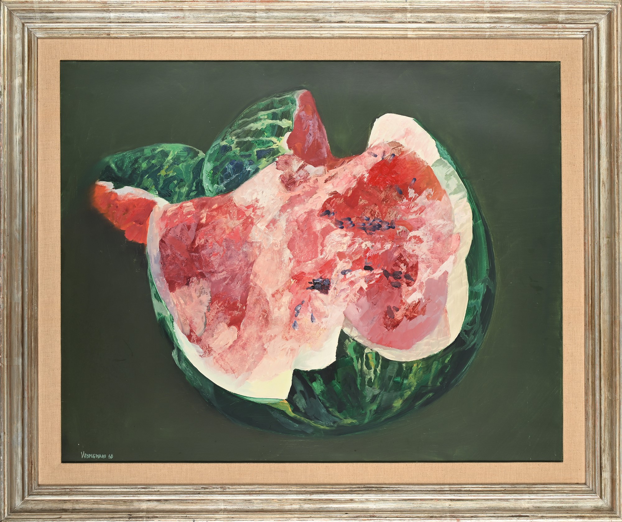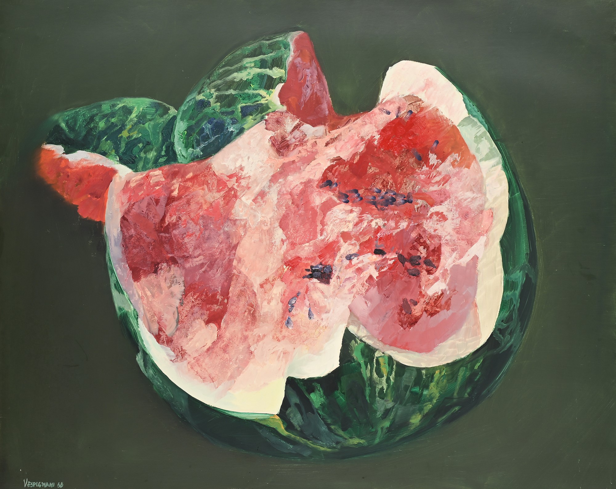 Anguria 1966 Olio su tela cm 80x100 - in cornice cm 103x123 Firma in basso a destra "Vespignani '66". Al verso reca titolo, firma e data "Anguria, Vespignani '66"