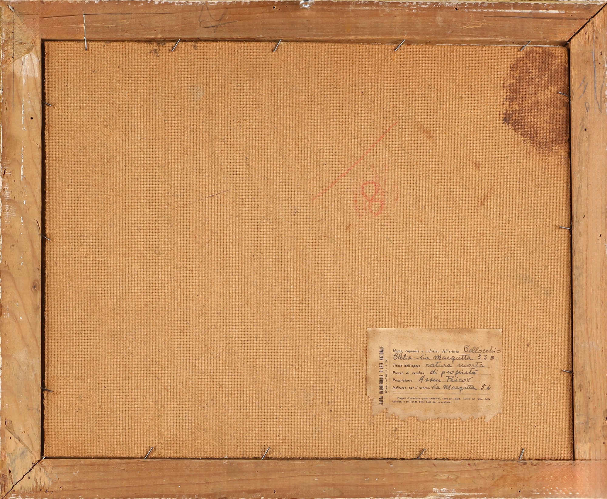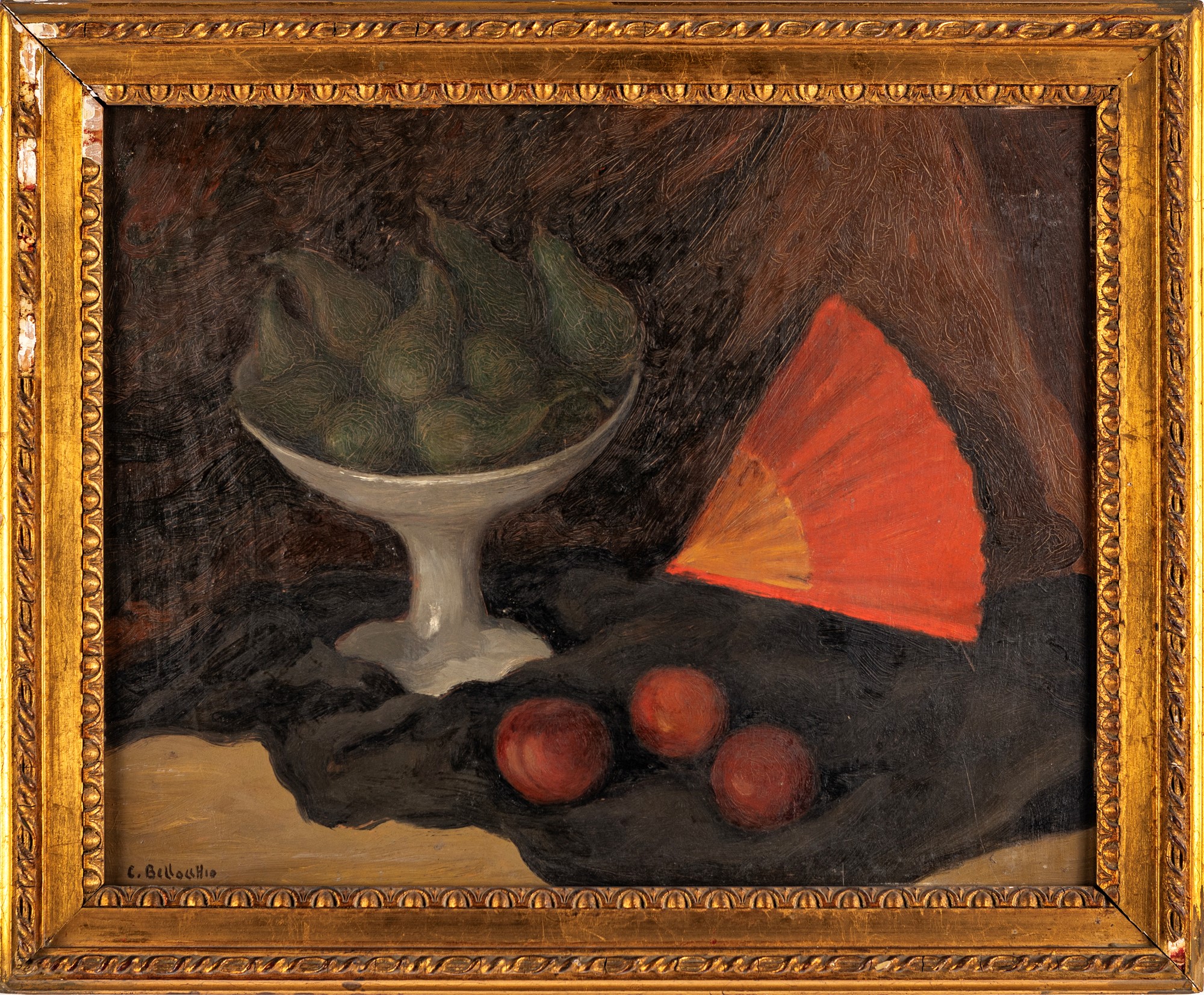 Natura Morta Olio su faesite cm 39x49 - in cornice cm 47x57 Firma in basso a sinistra "C.Bellocchio". Al verso reca etichetta della "IV Quadriennale d'Arte Nazionale, Roma" con indicazione di provenienza "Assen Peikov"