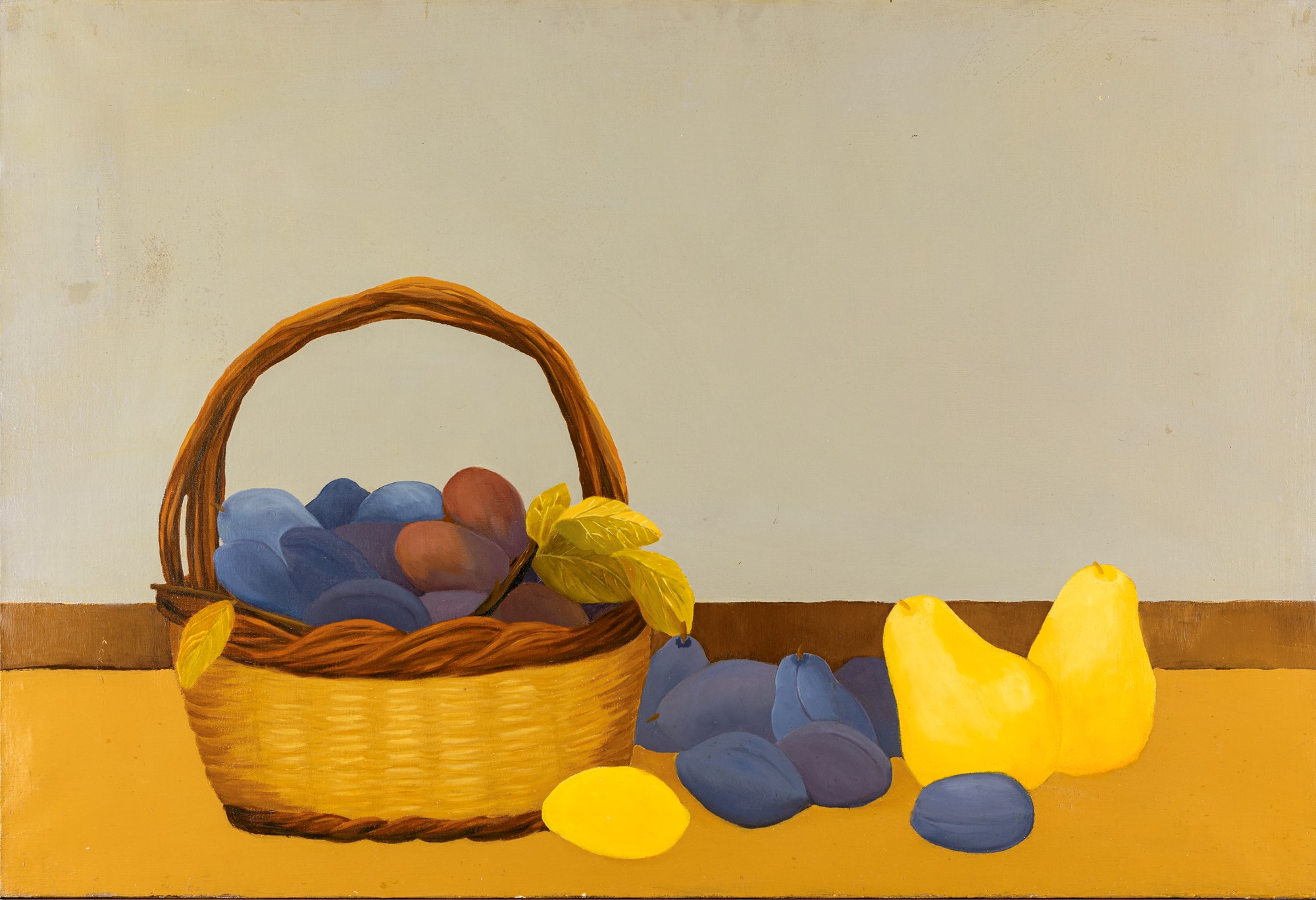 Bice Brichetto (Milano 1926-Orvieto 2012) Cesto con Prugne 1996 Olio su tela...