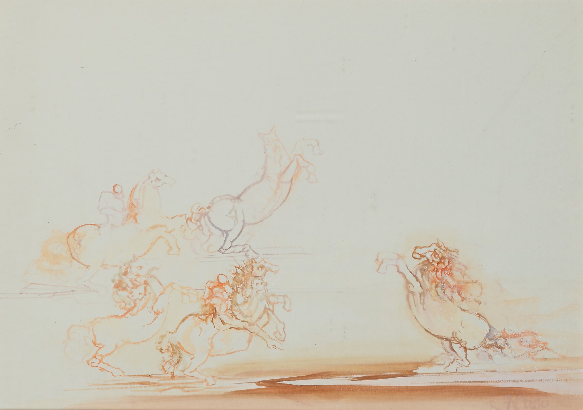 Cavalli Tempera e acquarello su carta cm 31x44,5 - in cornice cm 54x66 Firma in basso a destra "F.Clerici". Certificato di autenticità su fotografia rilasciato e firmato da Giancarlo Renzetti.