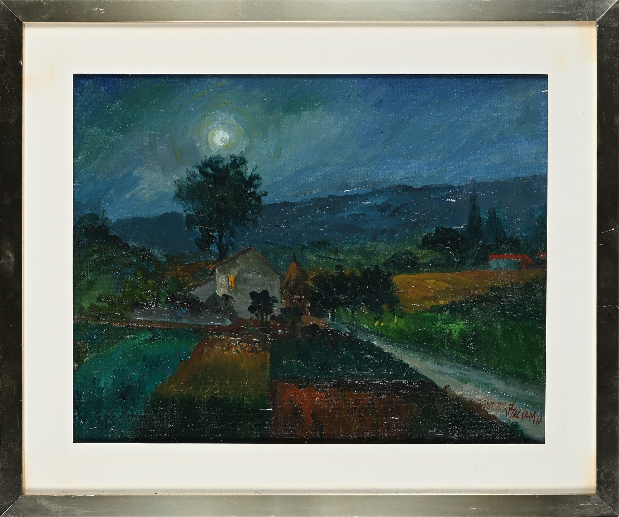 Paesaggio notturno Olio su cartone telato cm 34,5x43 - in cornice cm 45x55 Firma in basso a destra "V. Balsamo"