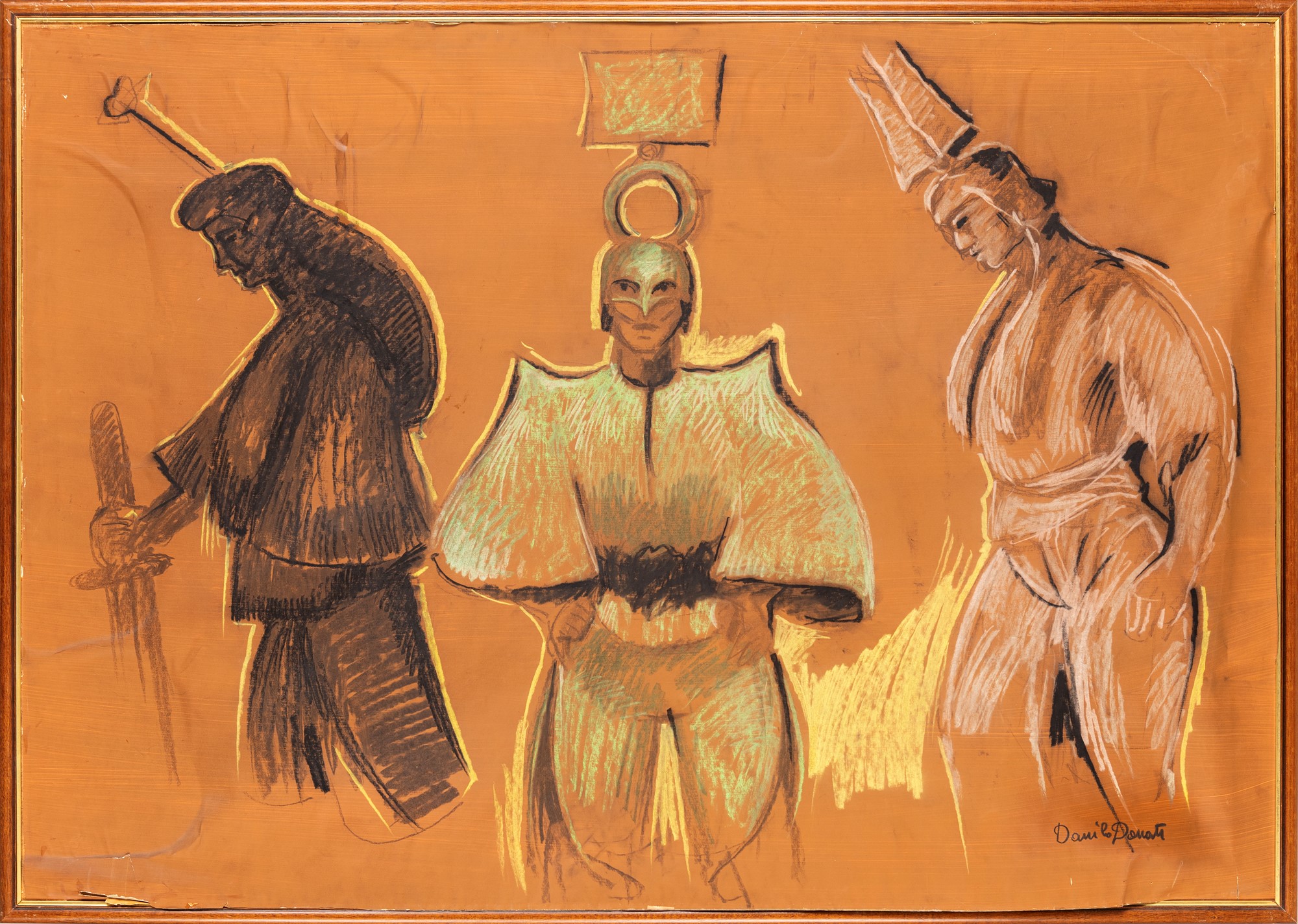 Senza titolo (Disegno per costumi di scena) Pastelli su carta cm 86x123,5 - in cornice cm 91x128 Firma in basso a destra "Danilo Donati".
