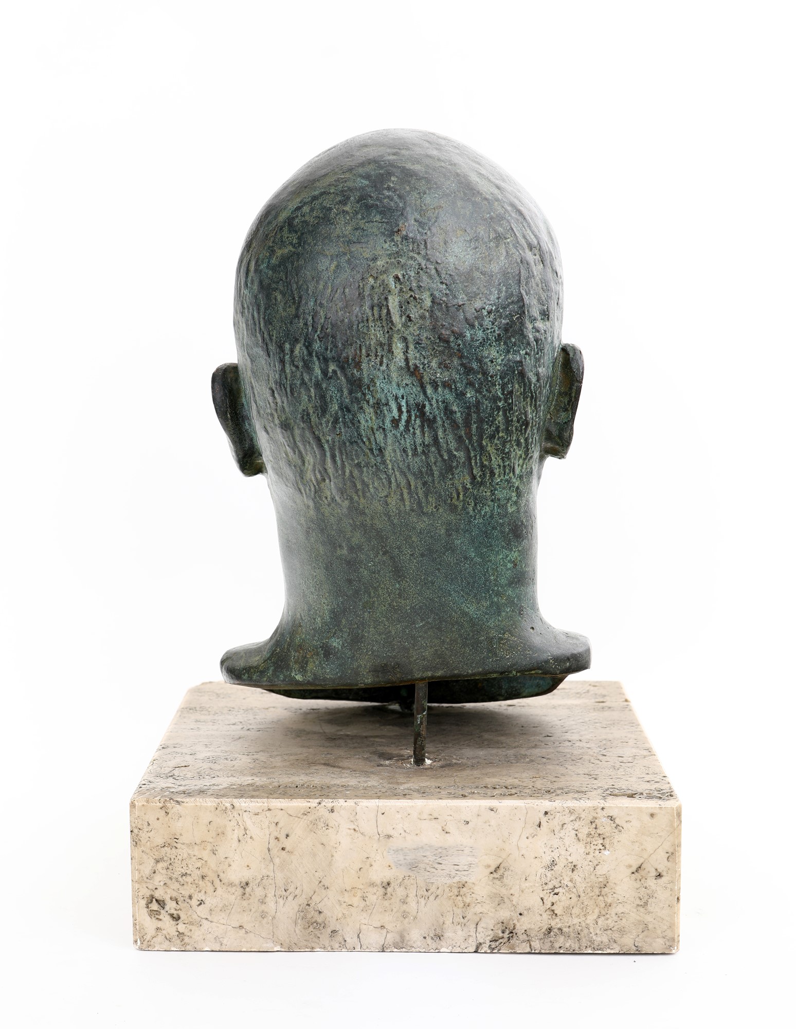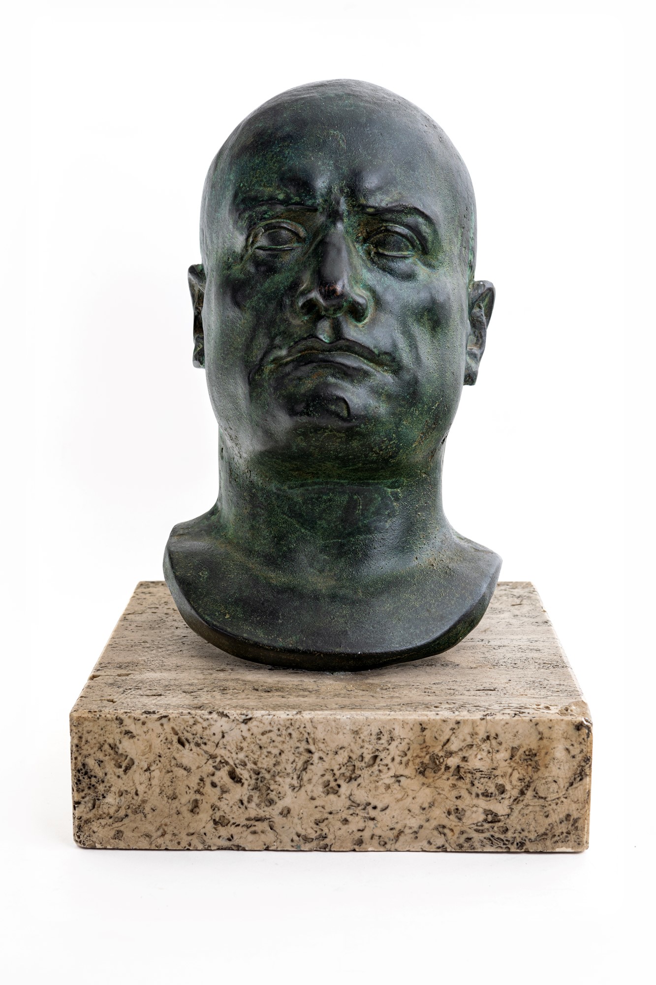 Busto ritratto di Mussolini bronzo cm 30x18 circa Base in travertino (cm 25x25)