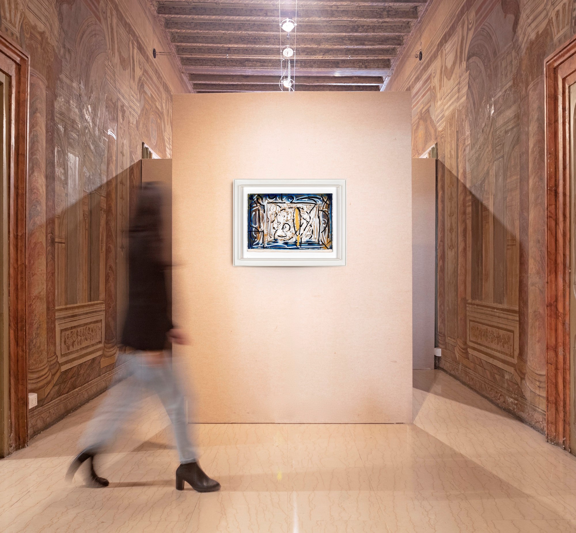 Composizione 1989 Olio, carboncino e smalto su carta cm 45x65 - in cornice cm 68x88 Al verso reca firma "M.M. 18 / Riopelle" Certificato di autenticità e provenienza su fotografia rilasciato da Antonio Sapone