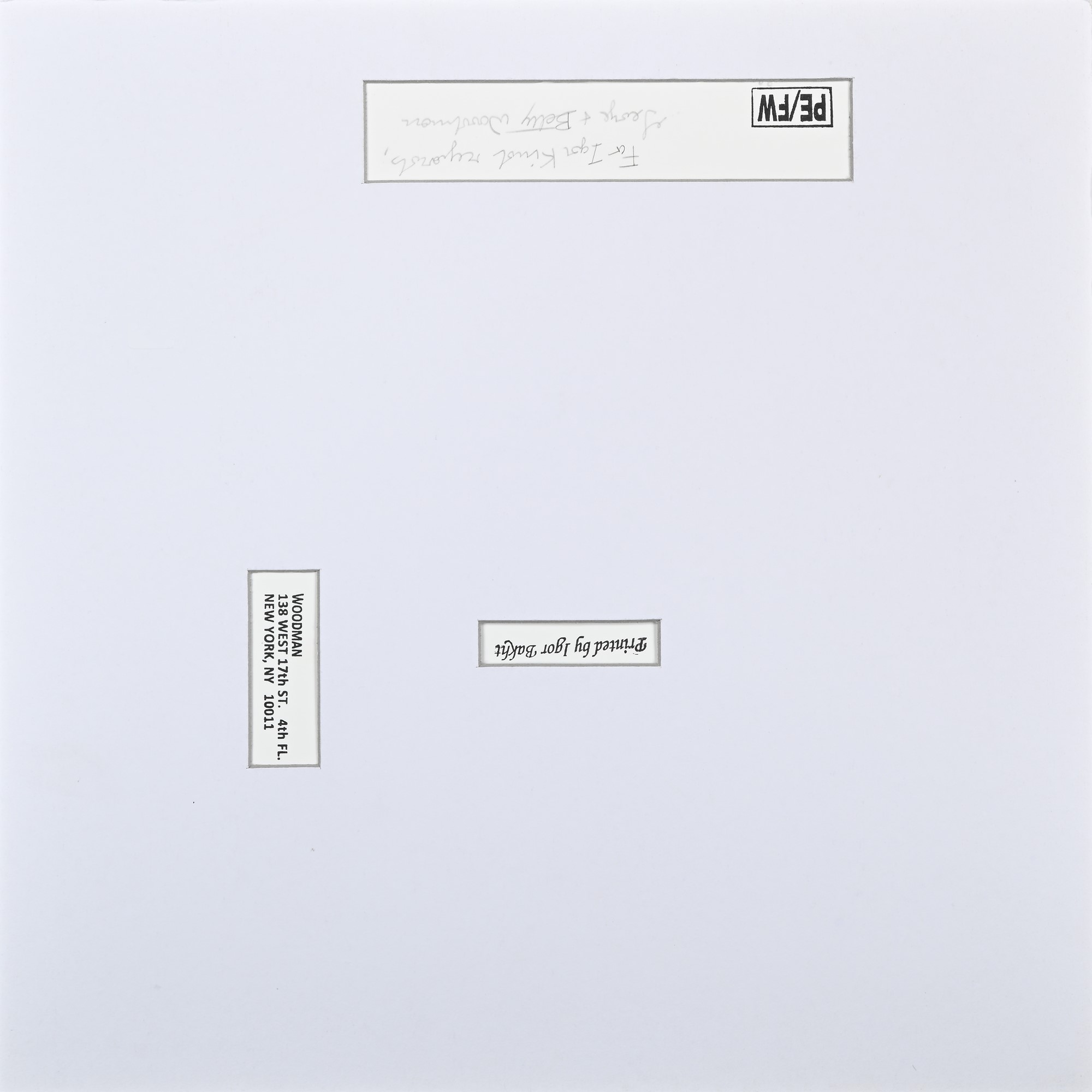 Providence Rhode Island 1976/78 (stampata nel 1997) Stampa successiva alla gelatina ai sali d'argento a cura di Igor Bakht cm 13,3x13 Al verso reca timbri "Printed by Igor Bakht"; "Woodman, 138 west 17th ST. 4th FL. New York, NY 10011" e "PE/FW". A matita "For Igor Kind Regards, George + Betty Woodman".
