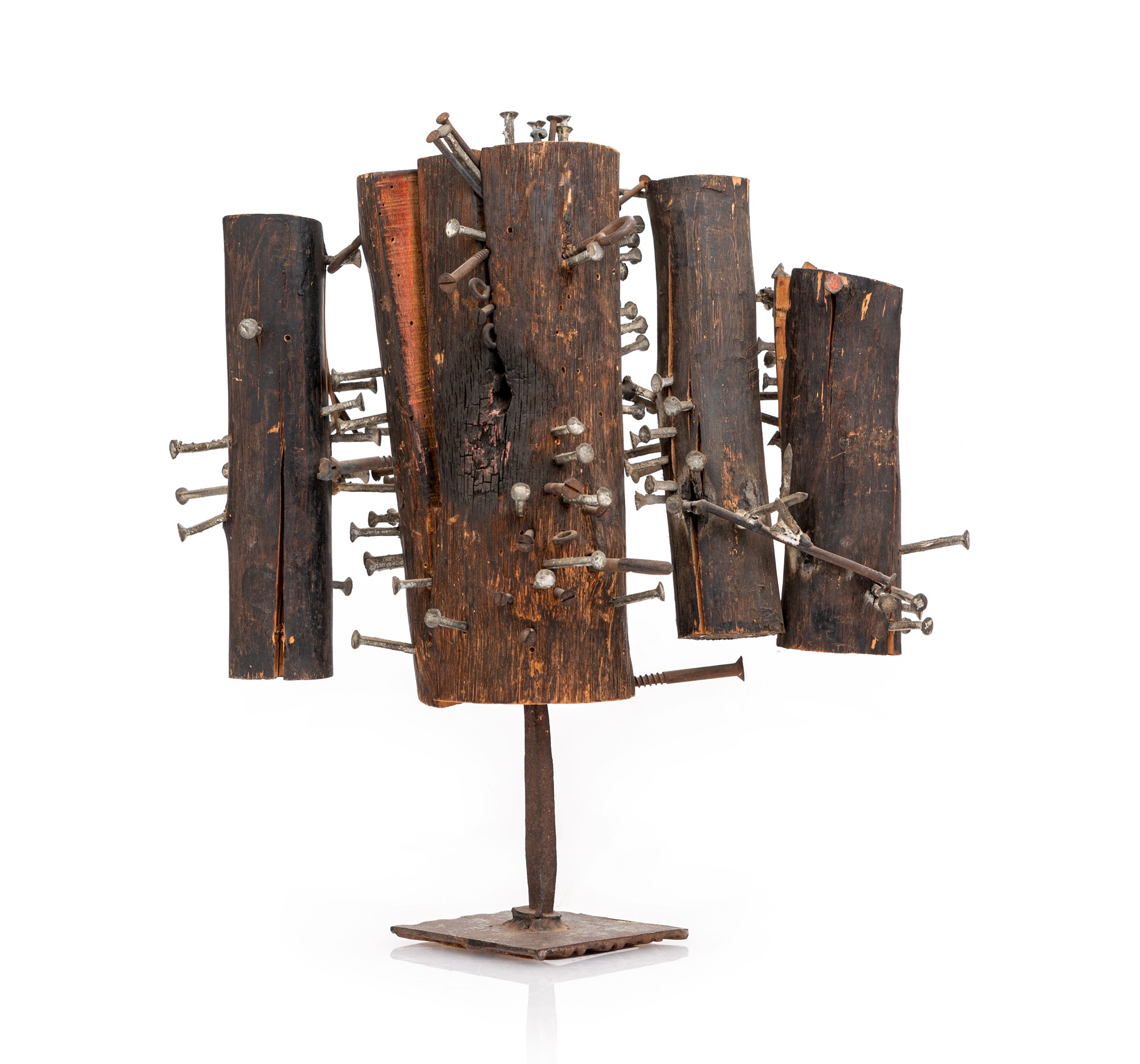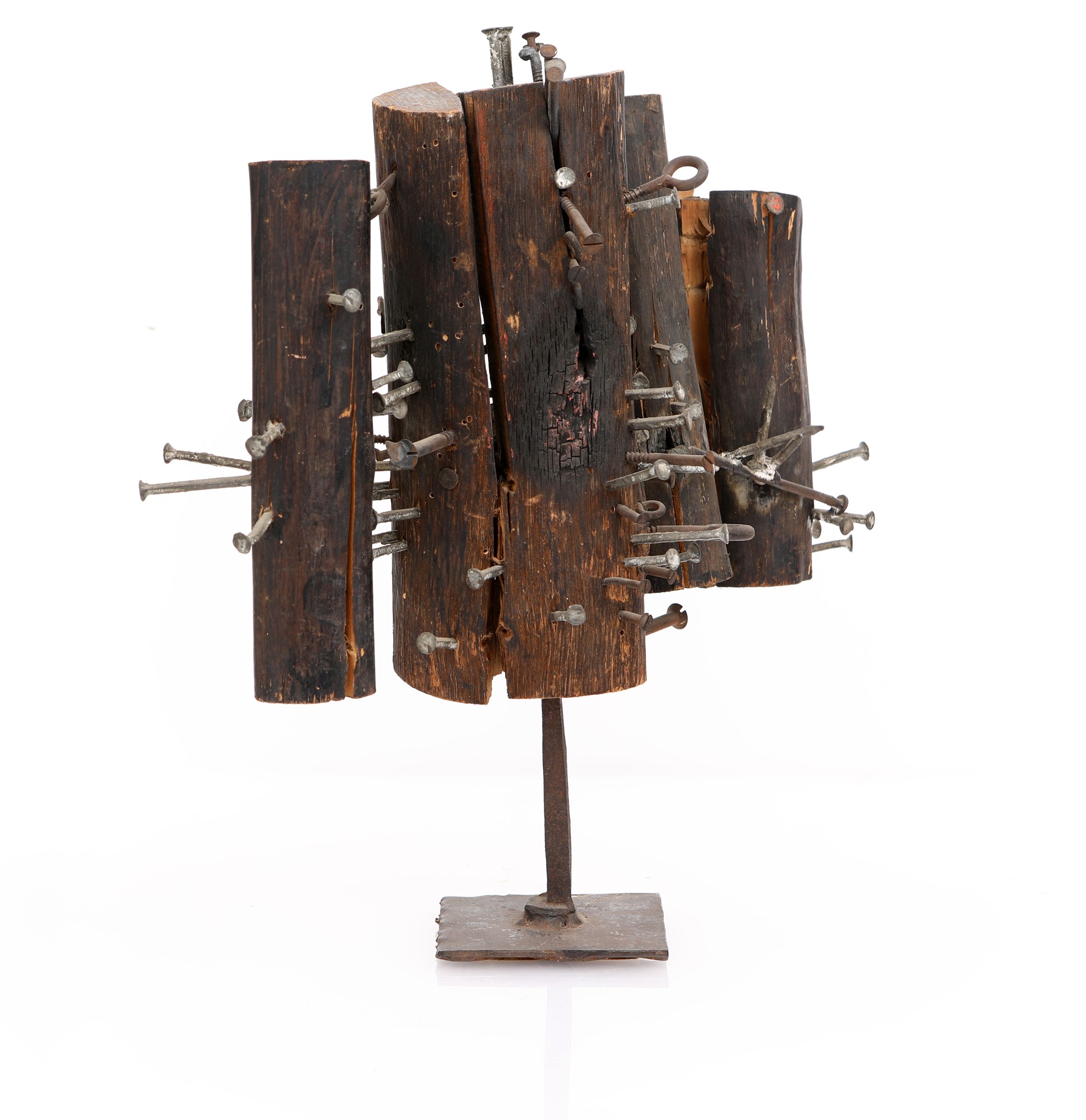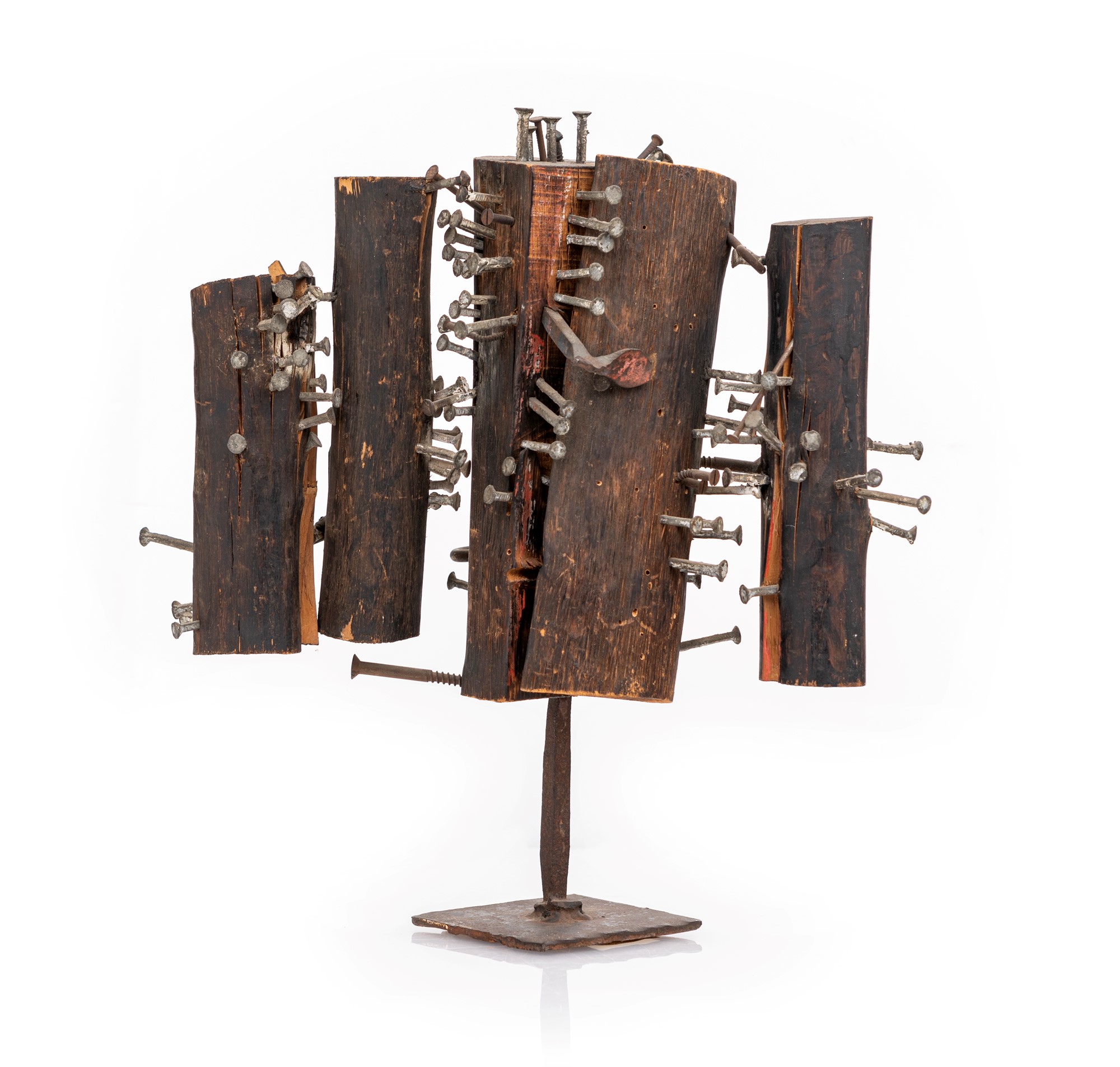 Senza titolo 1958 Scultura in legno, chiodi e viti cm 39x38x15 circa Certificato di autenticità su fotografia rilasciato dall'artista