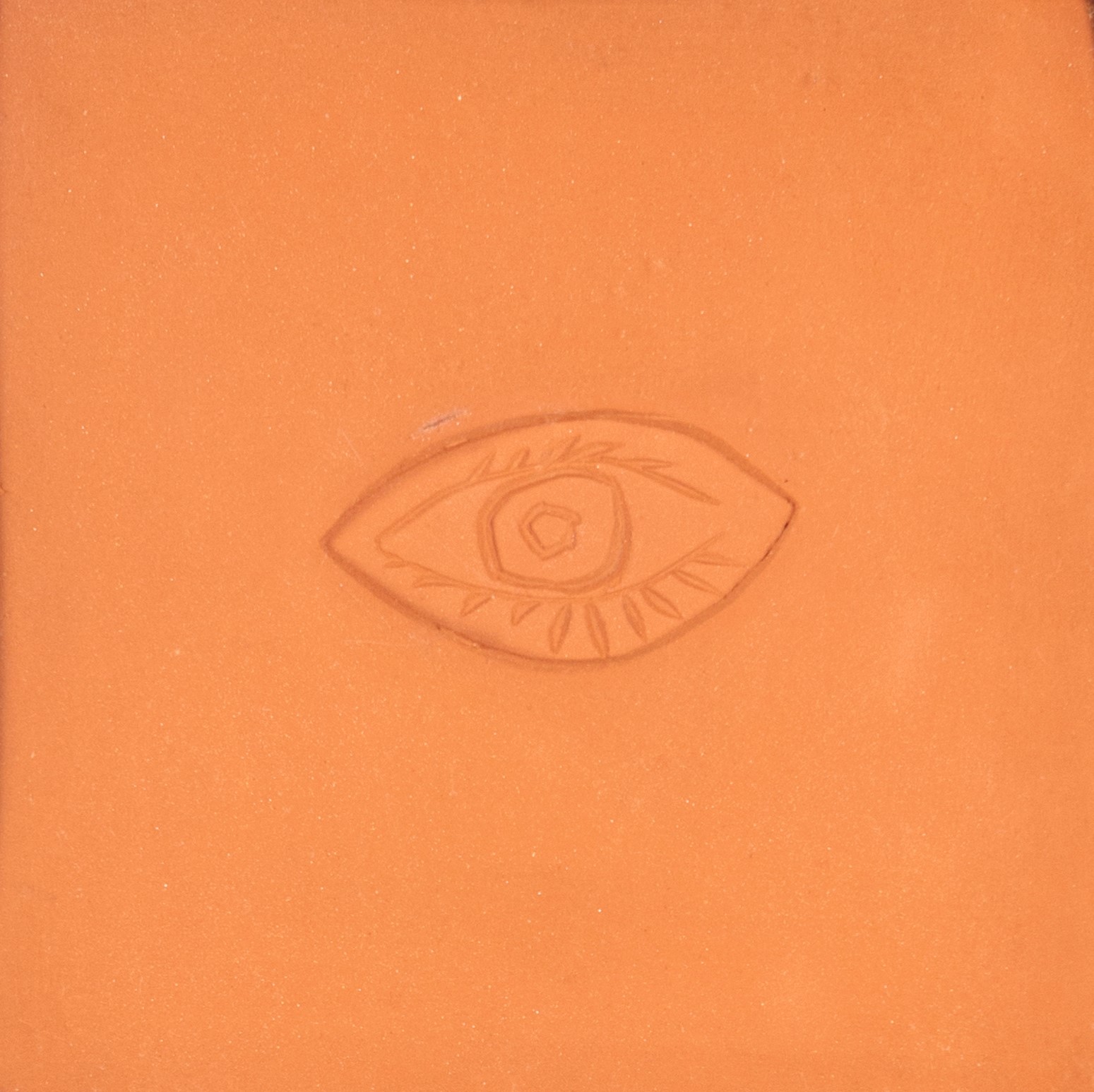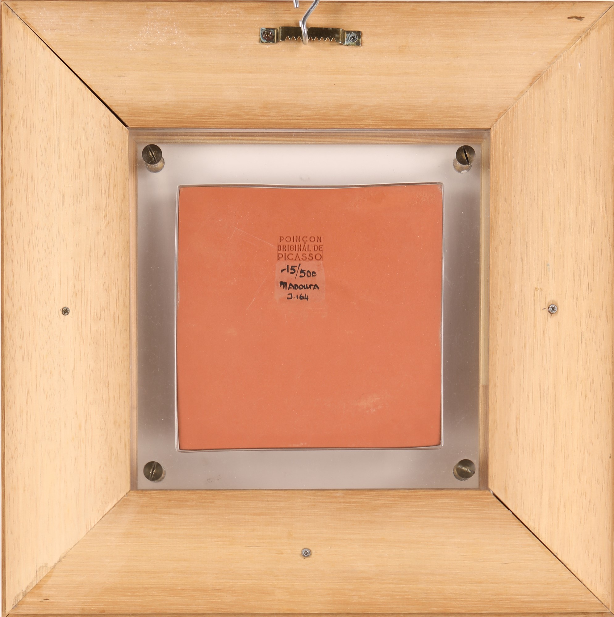 Ovale a L'oeil A 1971 Terracotta cm 15x15 - in cornice cm 35x35 Al verso reca "Poiçon original de Picasso". A penna "-15/500, Madoura, j. 164"