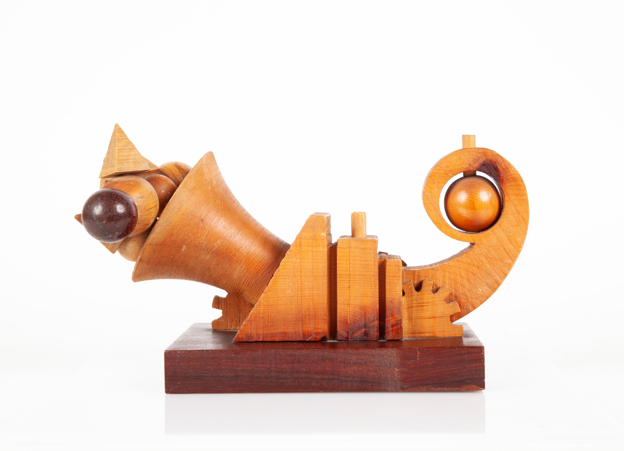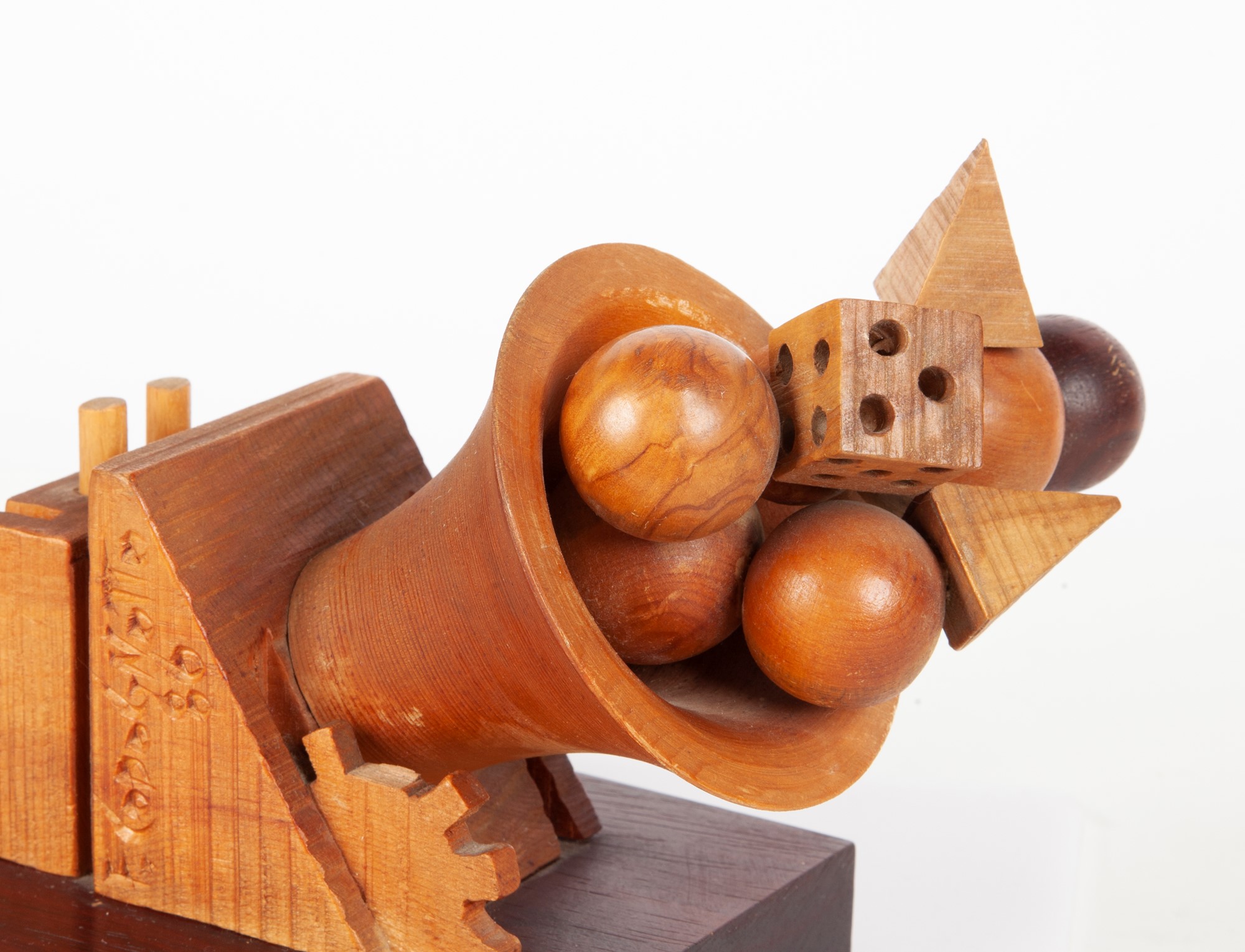 Tromba 1986 Scultura in legno cm 26x12x14 con base in legno Firma e data "F. Codognotto '86"