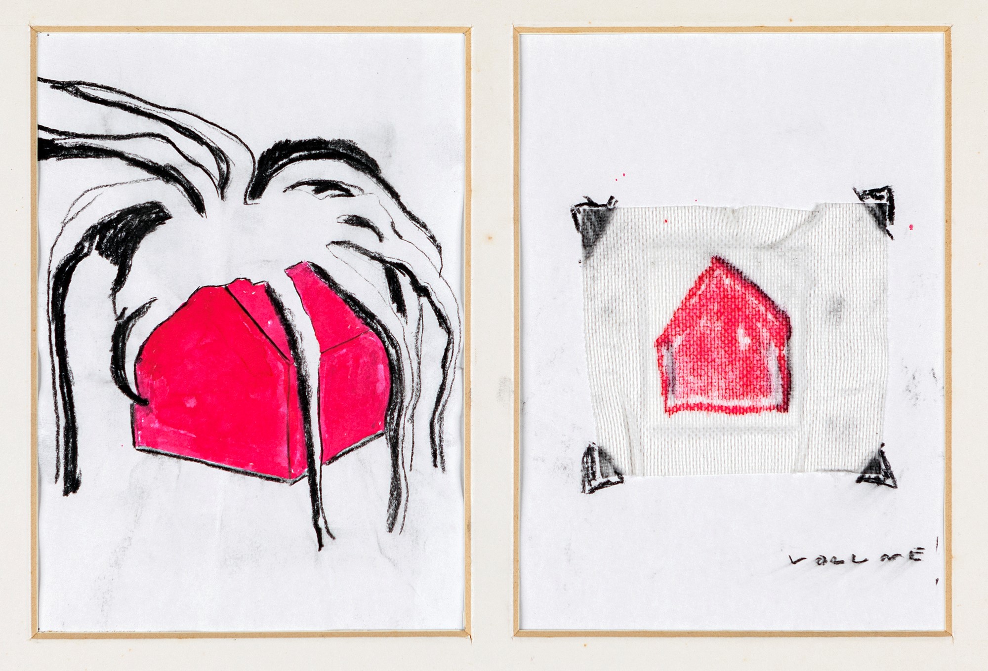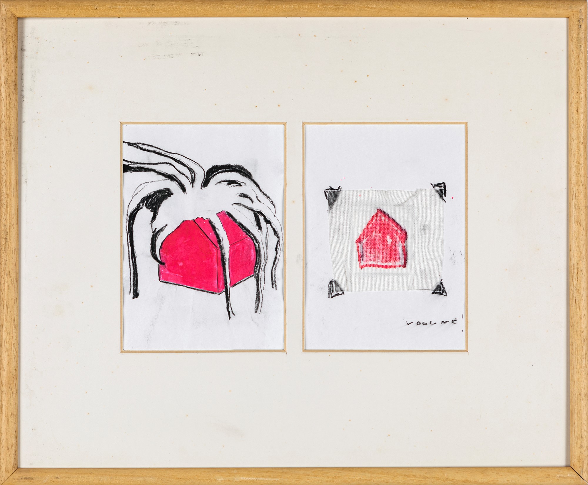 Volume ! 2001 Carboncino, matita, acquarello, garza su carta cm 41x50 - in cornice cm 43x52 Firma, titolo e data al verso "Maurizio Savini / Volume / 2001". Titolo in basso a destra sul fronte