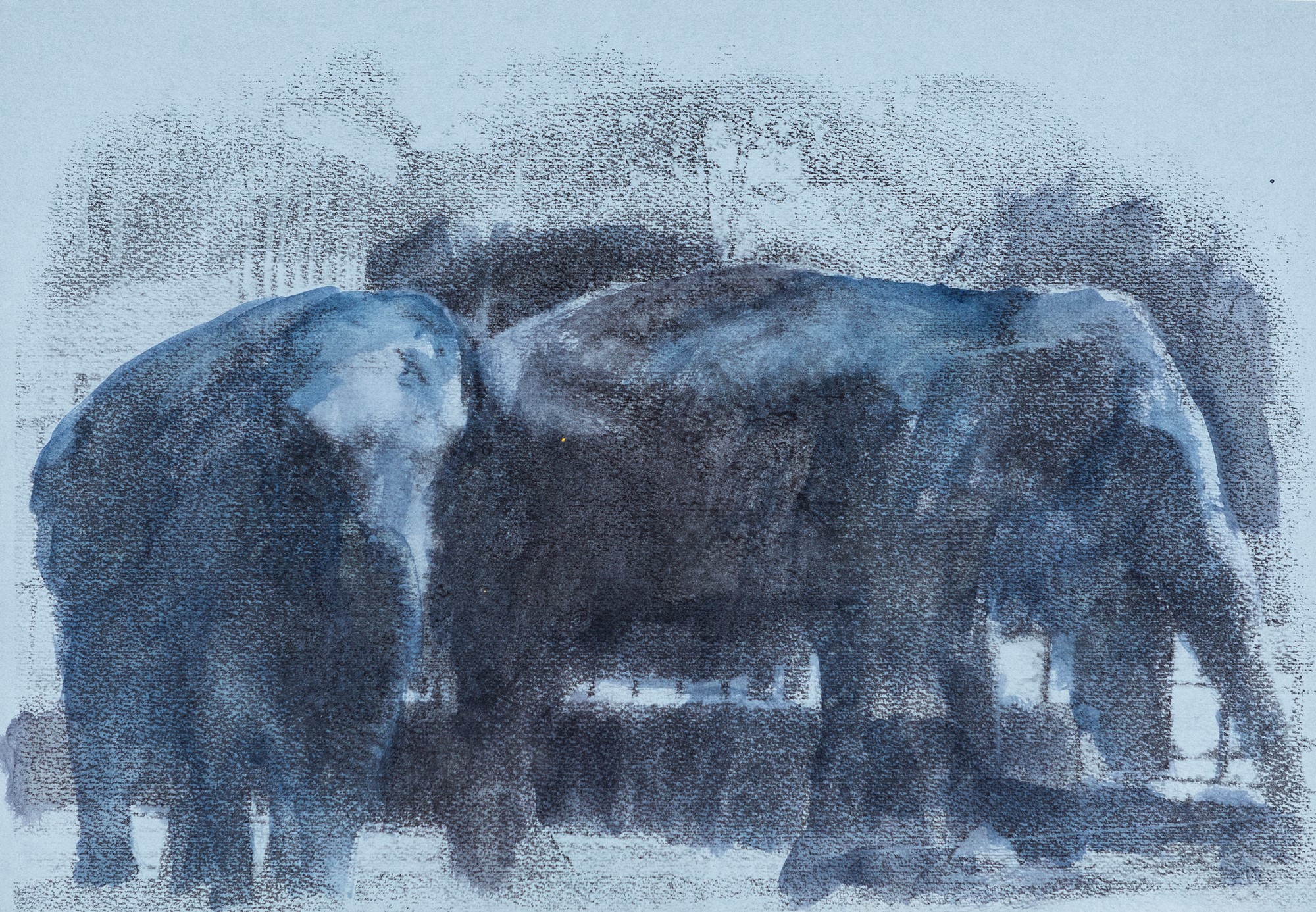 Gli Elefanti 2006 2006 Pastello e acquarello su carta cm 29x42 - in cornice cm 44x56 Firma, data e titolo al retro "Andrea Aquilanti 2006". Certificato di autenticità su carta intesta della Provincia di Ascoli Piceno firmata dal Segretario Generale Vittorio Mattioli. Asta di solidarietà Aiutiamo La Pace, 2007, Ascoli Piceno
