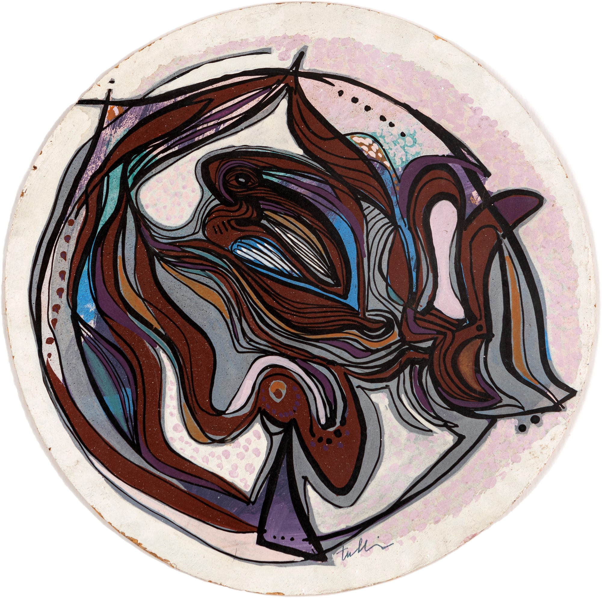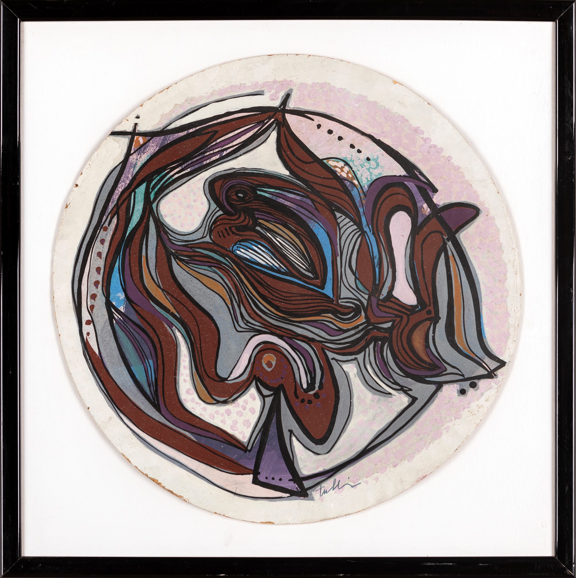 Senza titolo Tempera su cartone pressato cm ø 50 - in cornice cm 61x61 Firma sul fronte "Tulli".