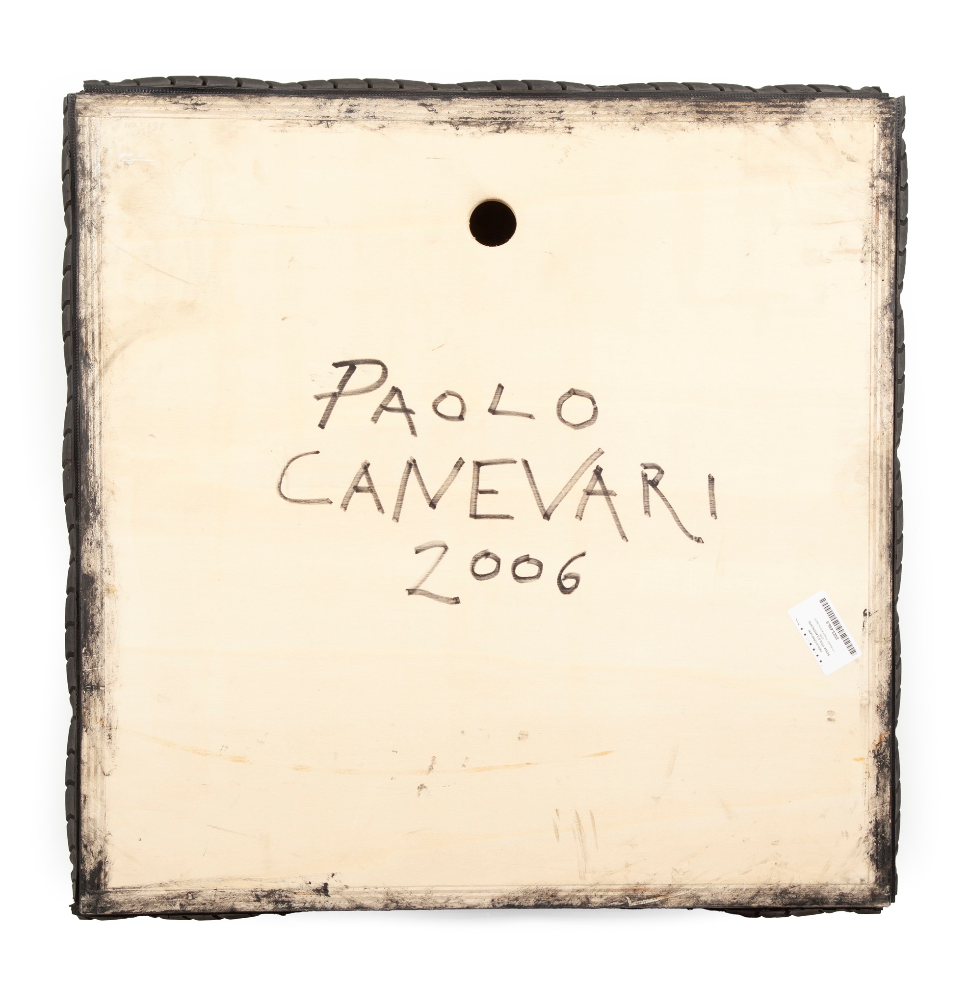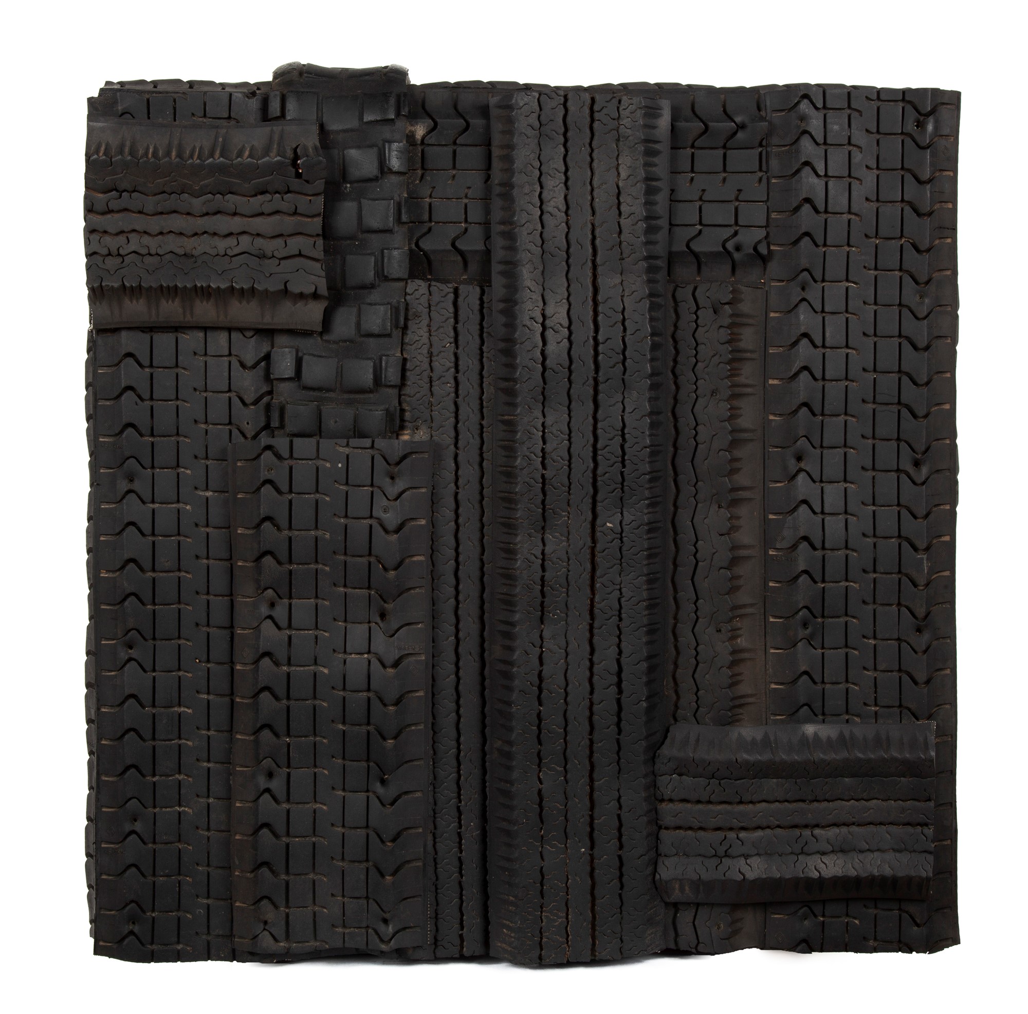 Landscape 2006 Gomma di pneumatico su legno cm 63x63 Al verso reca firma e data "Paolo Canevari 2006".  Certificato di autenticità su fotografia rilasciato dall'artista