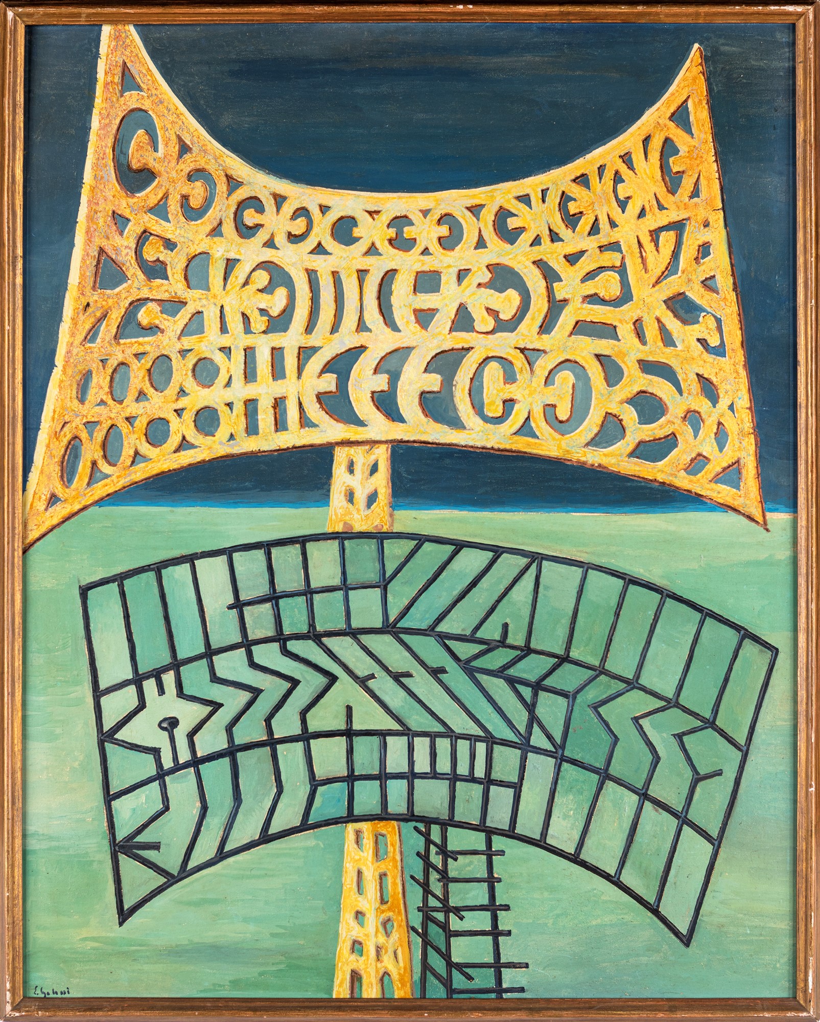 Enrico Galassi (1907 Ravenna-Pisa 1980) Antichi Radar 1966 Olio su tavola cm...