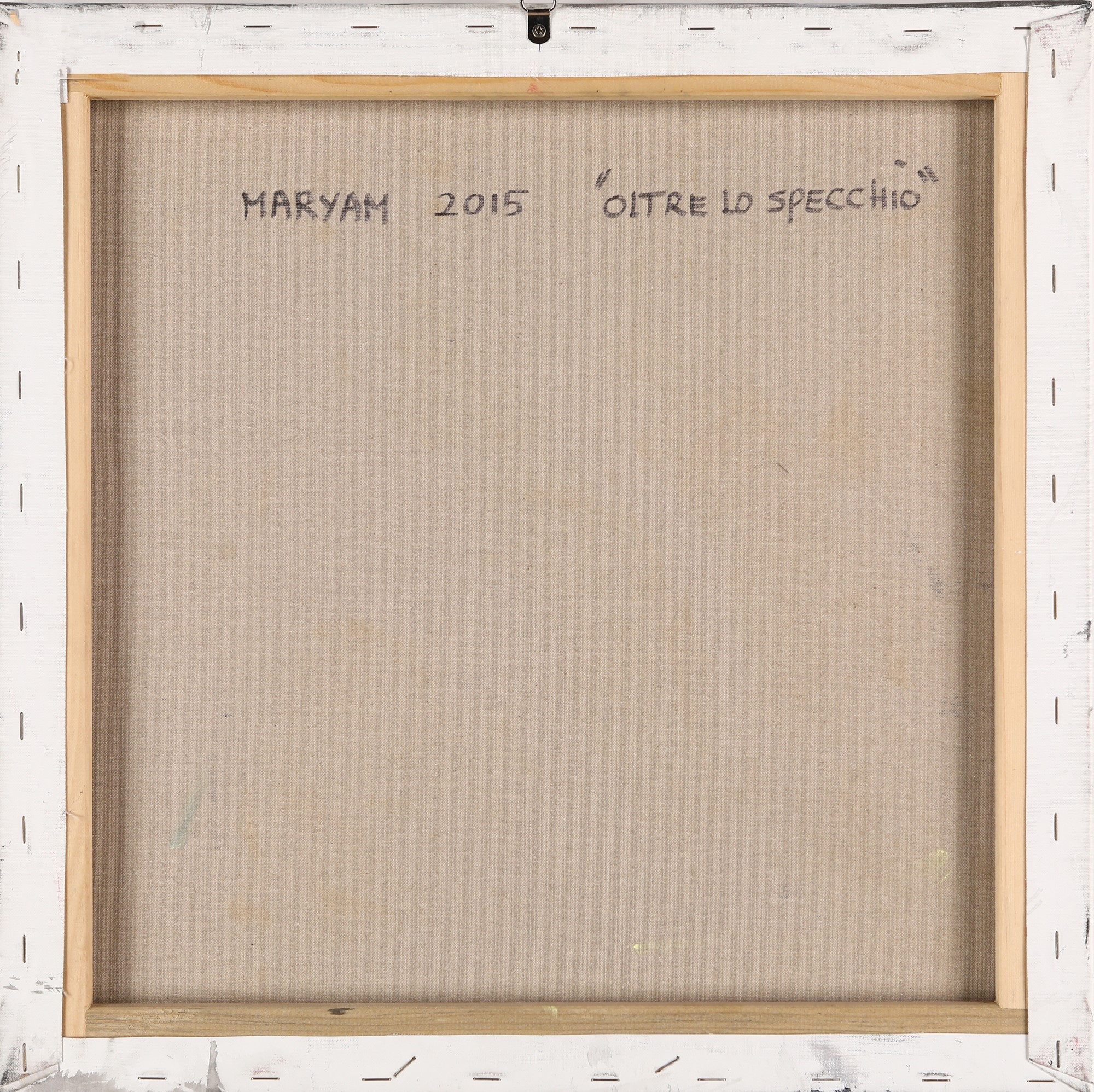 Oltre lo specchio 2015 Olio su tela cm 50x50 Firma in basso a destra "Maryam". Al verso titolo, data e firma Certificato di autenticità su fotografia rilasciato e firmato di pugno dall'artista