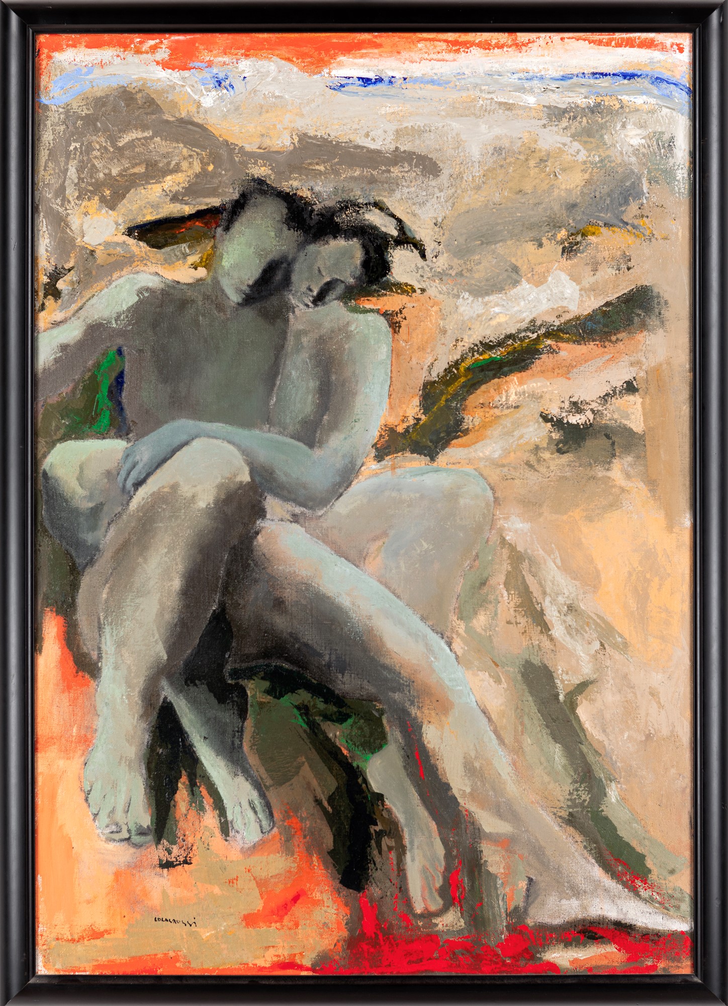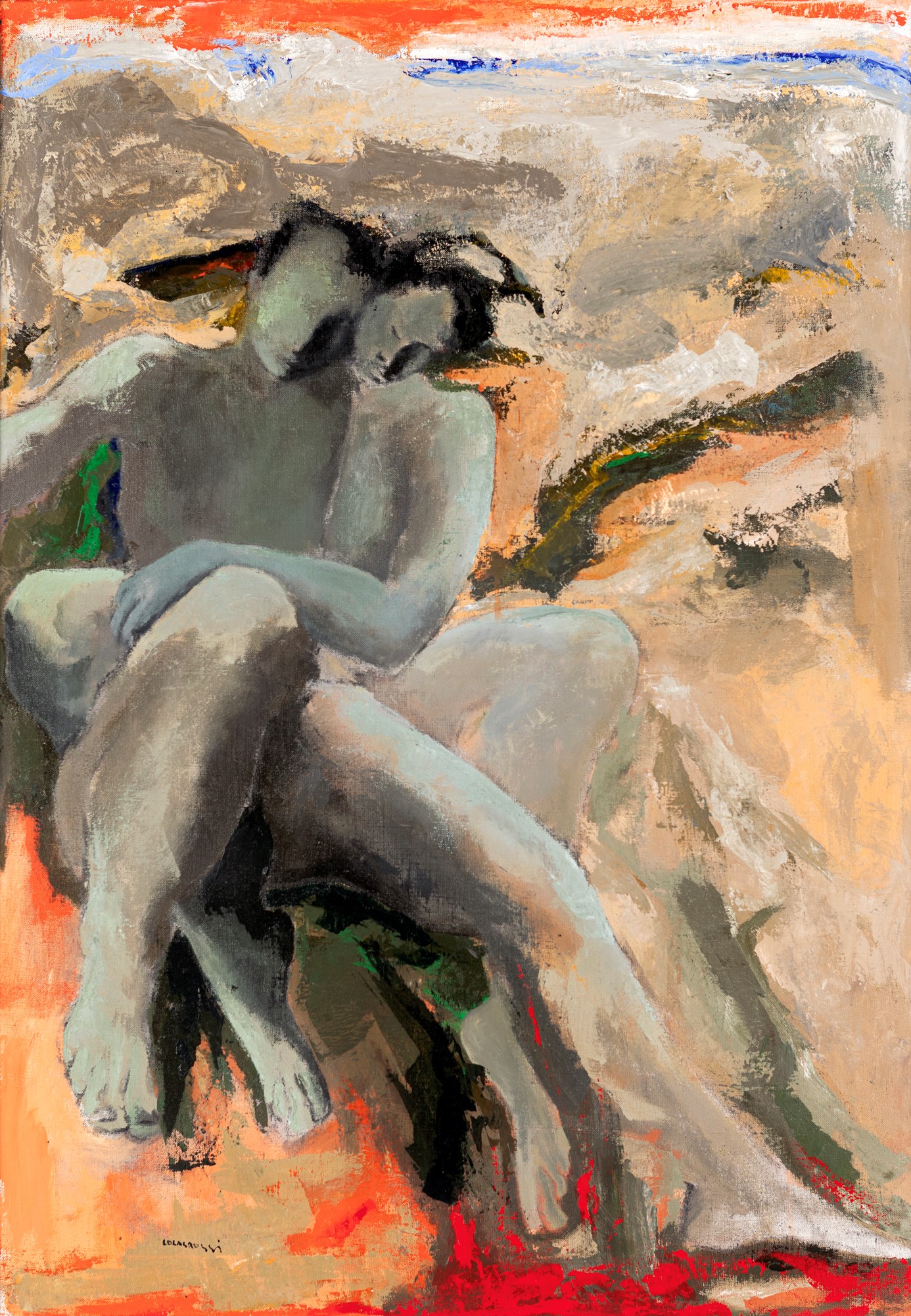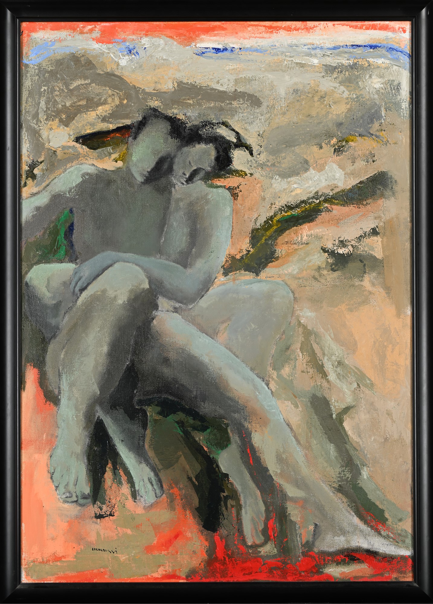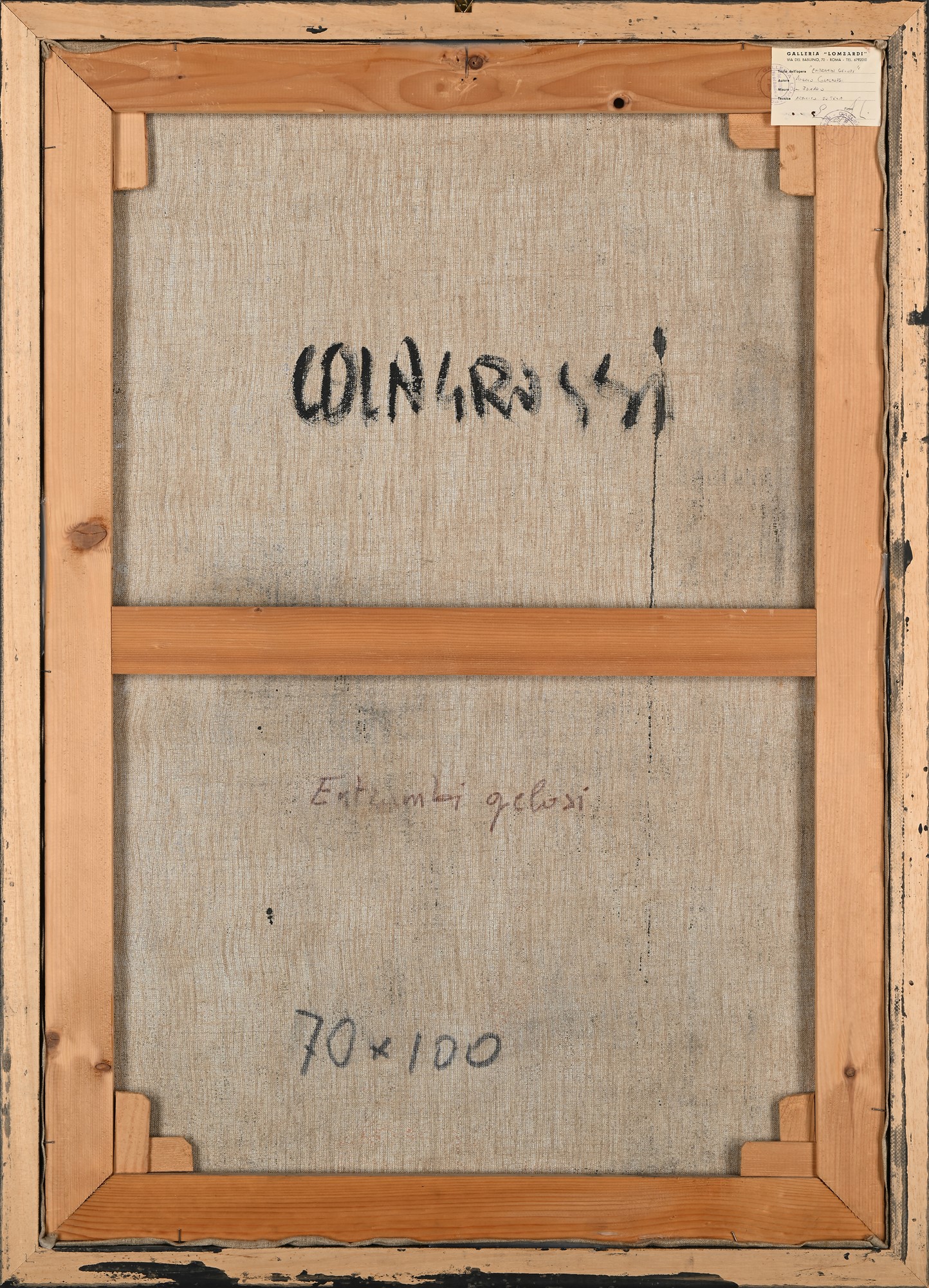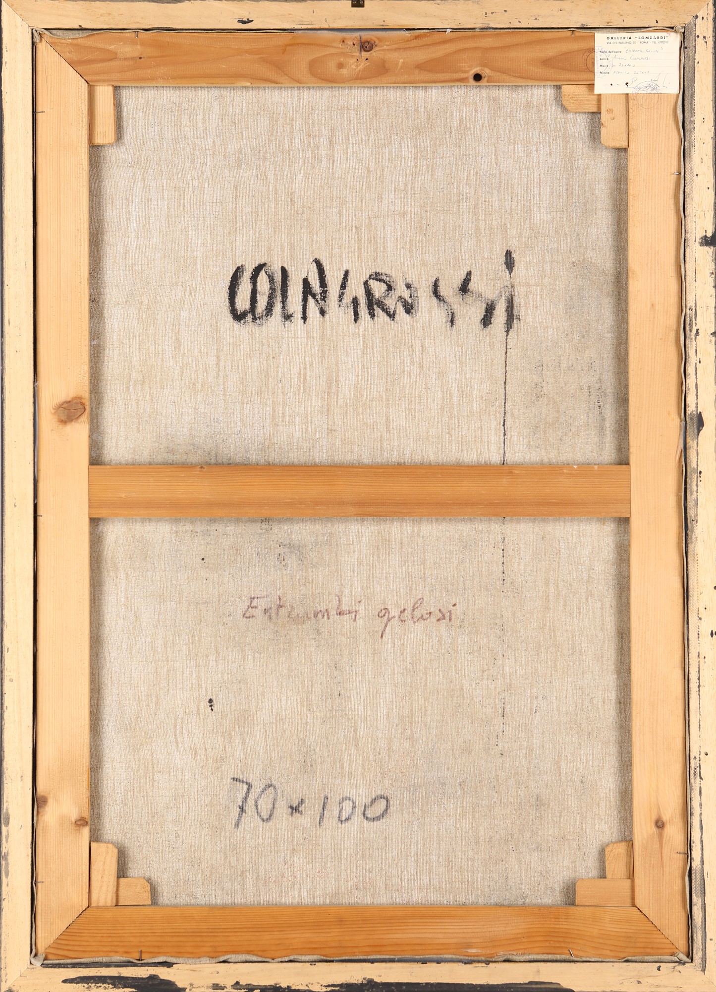 Entrambi gelosi Acrilico su tela cm 70x100 - in cornice cm 107x77 Firma in basso a sinistra "Colagrossi". Al verso reca firma e titolo ed etichetta della Galleria Lombardi Roma