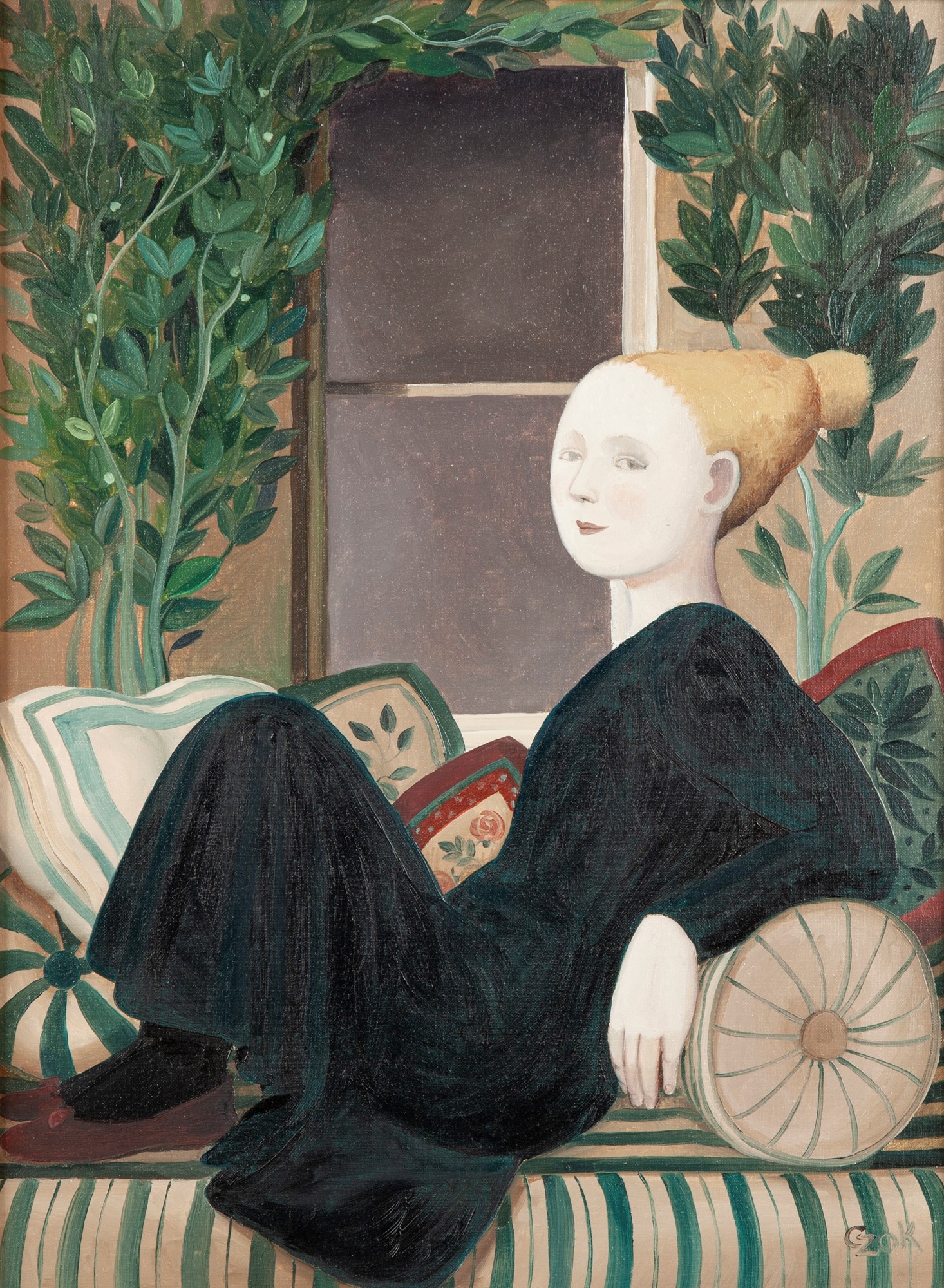 Marta Czok (Beirut 1947) Ragazza alla finestra Olio su tela cm 40x30 - in...
